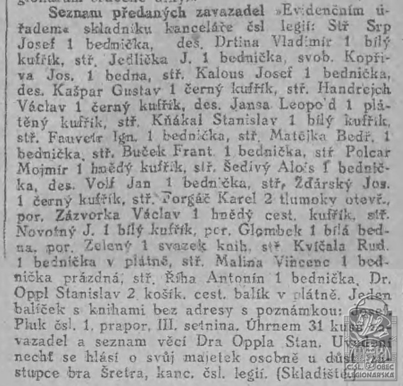 Jednotka v době zařazení:11.stř.pl. ( Čs. legie v Rusku )