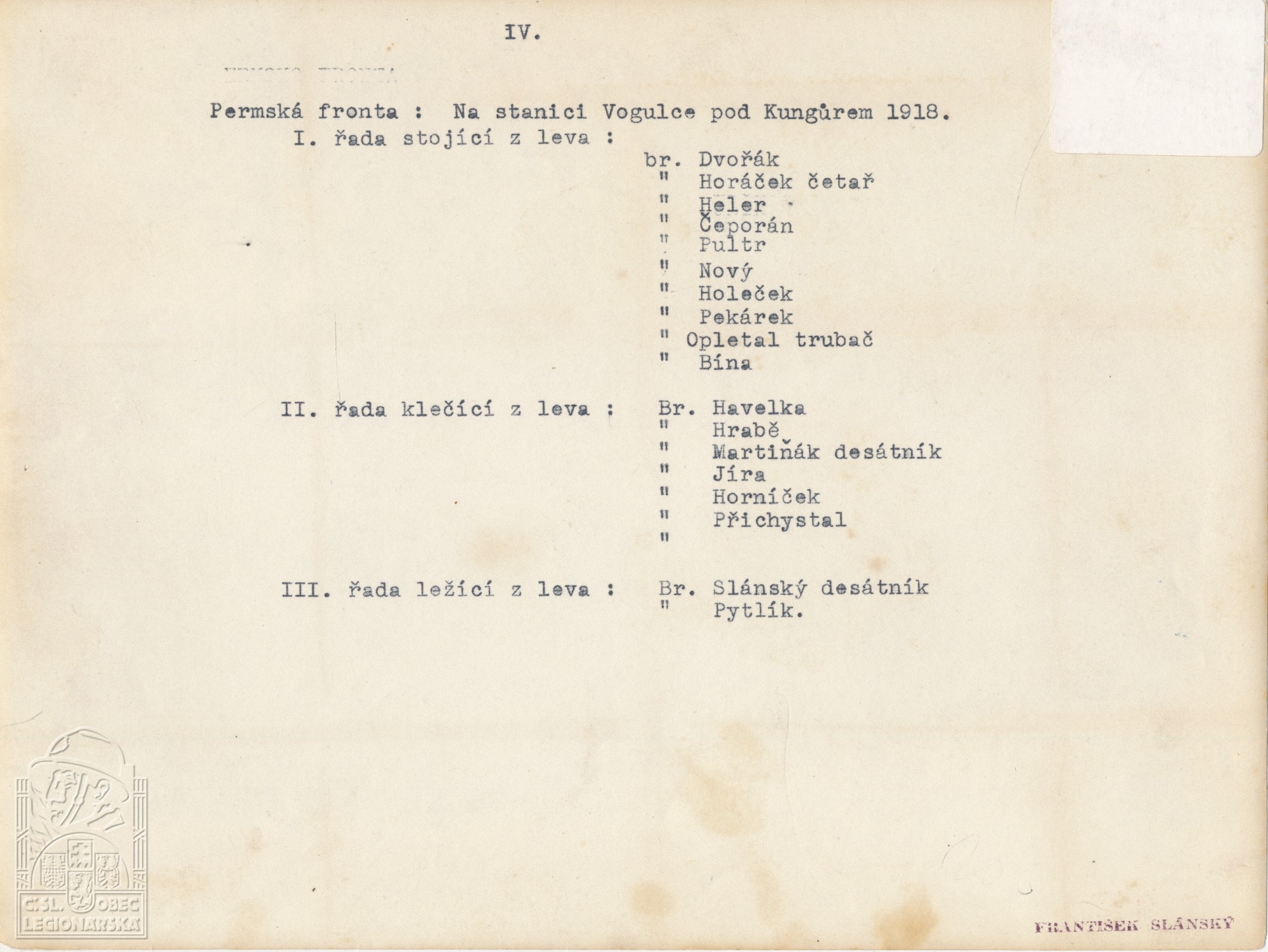 Jednotka v době zařazení:2.stř.pl. ( Čs. legie v Rusku )