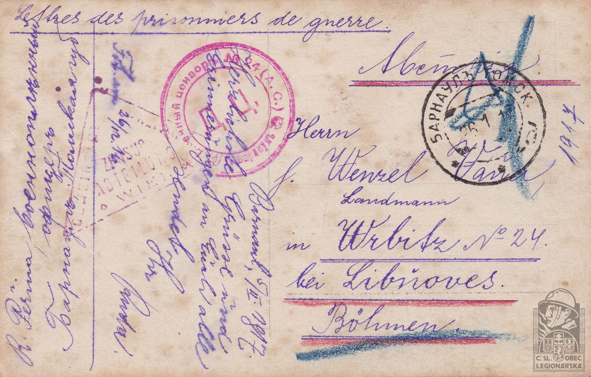 Jednotka v době zařazení:jízd.pl.1 ( Čs. legie v Rusku )