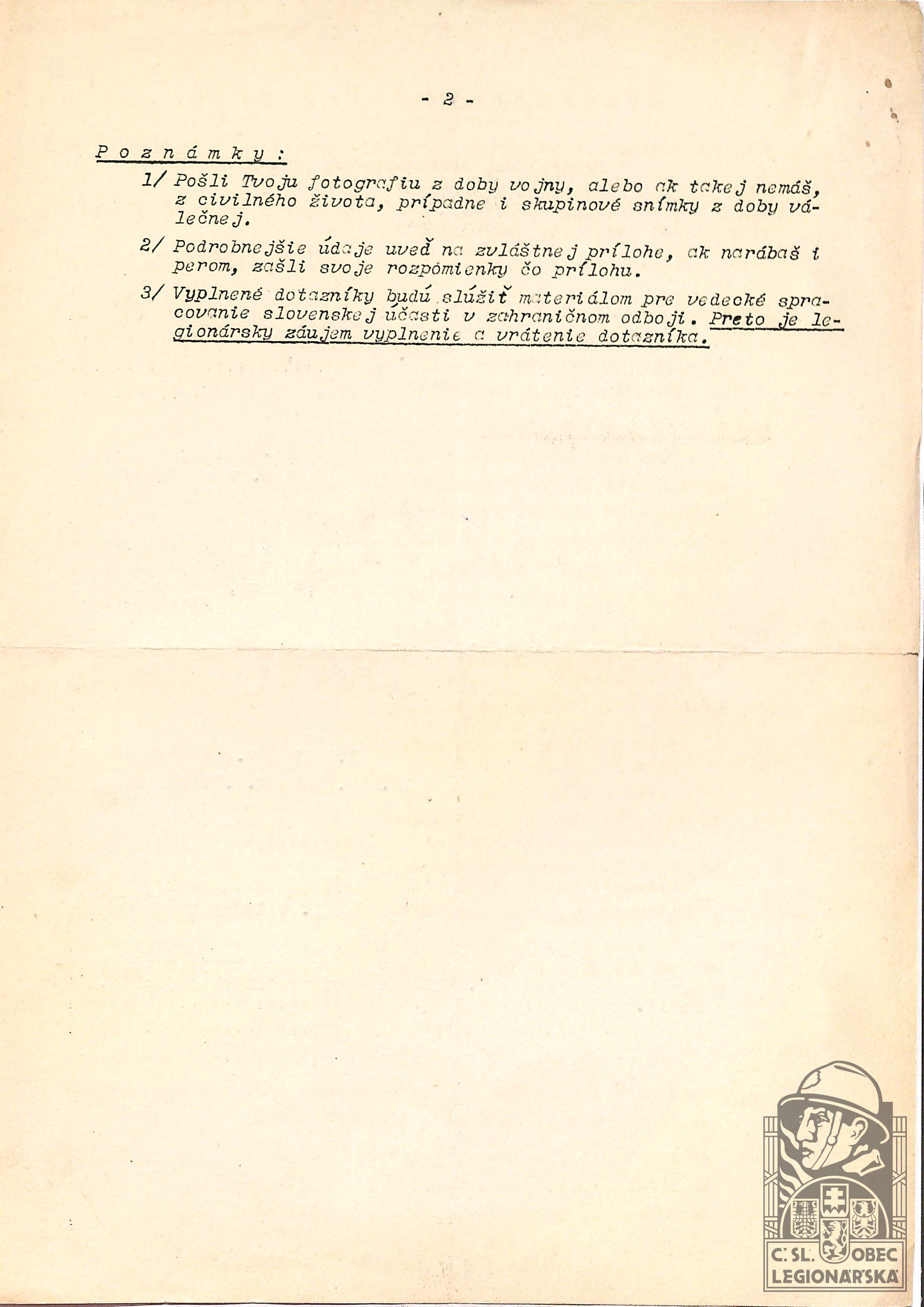 Zdroj informací: legionářský poslužný spis osobní karta legionáře