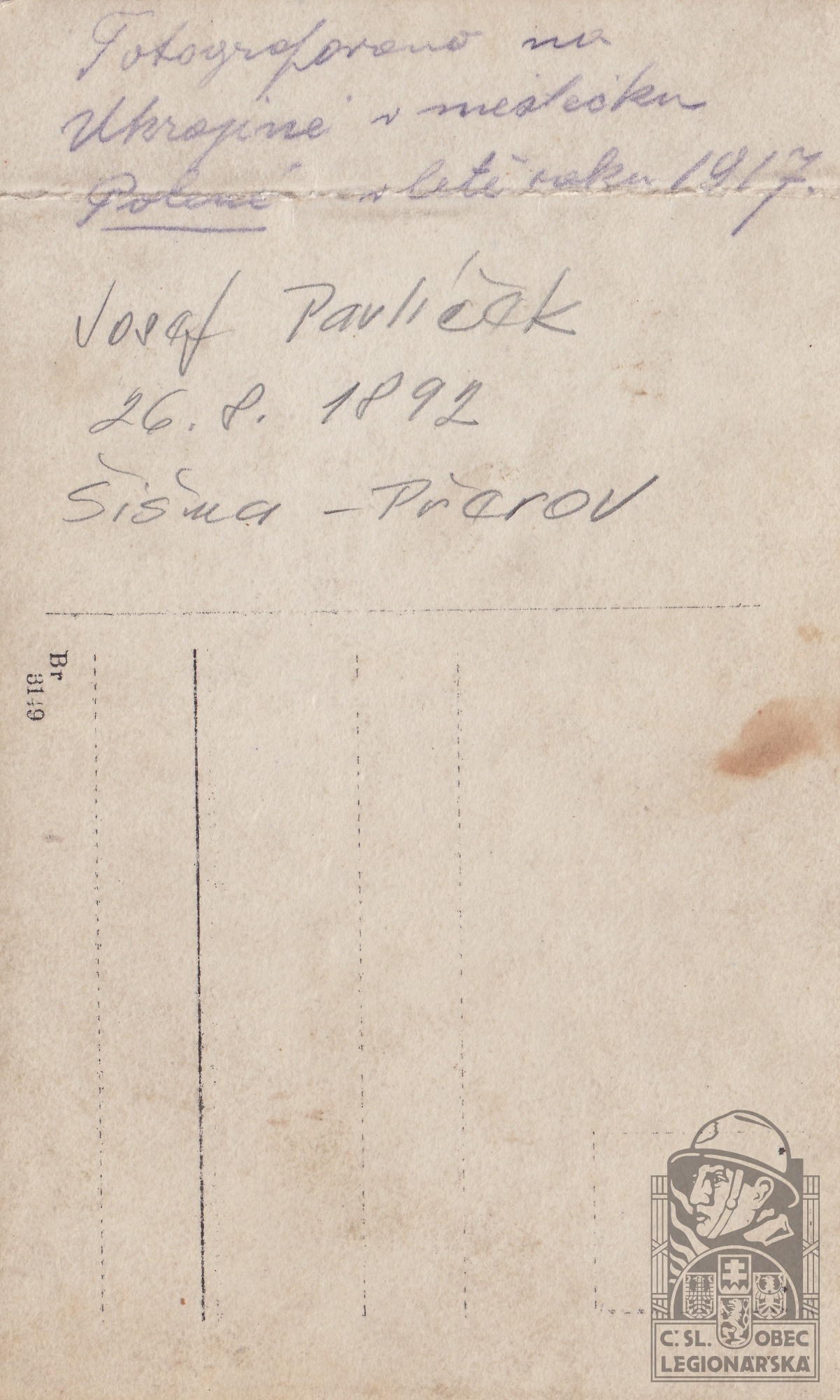 Zdroj informací: legionářský poslužný spis osobní karta legionáře