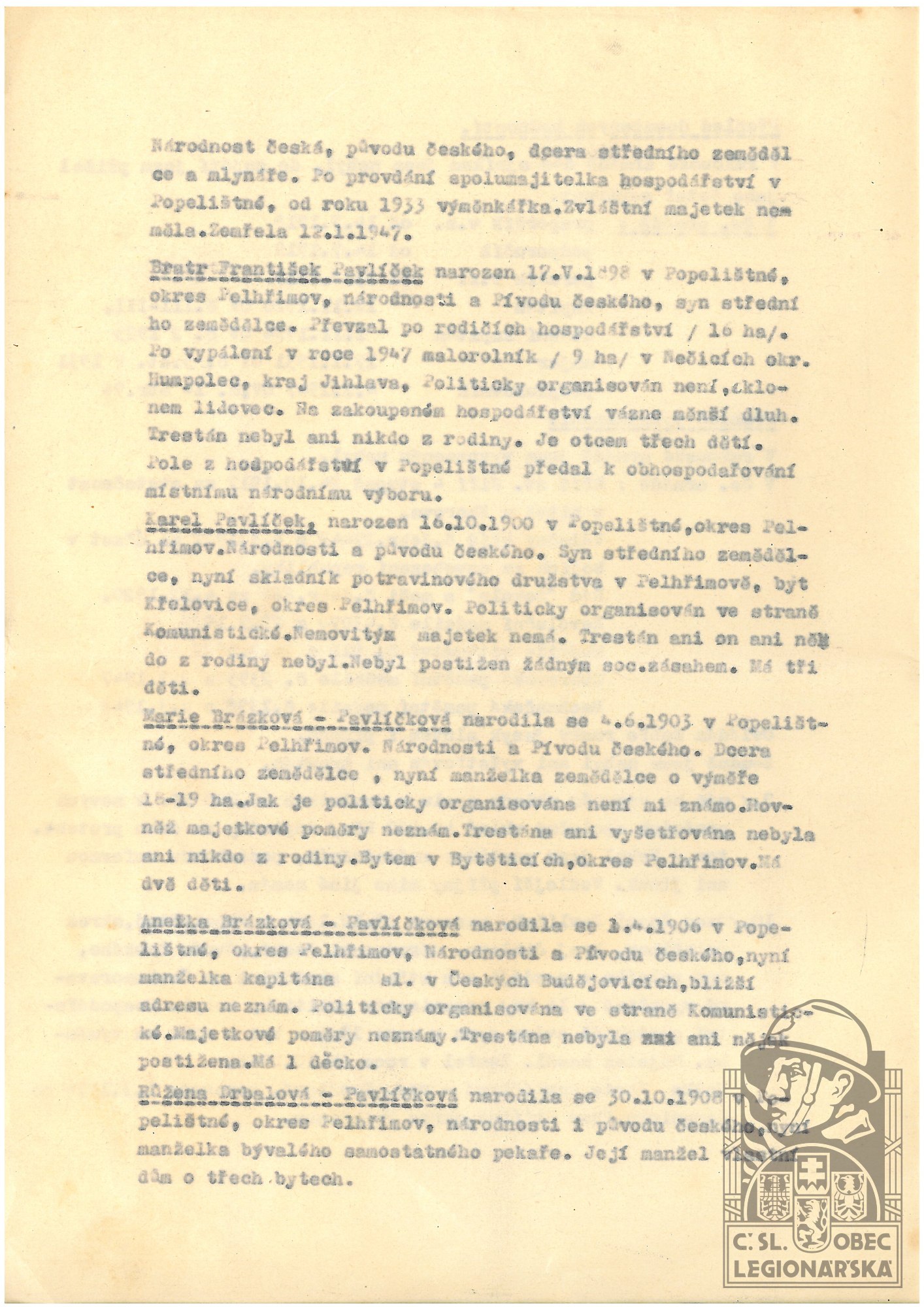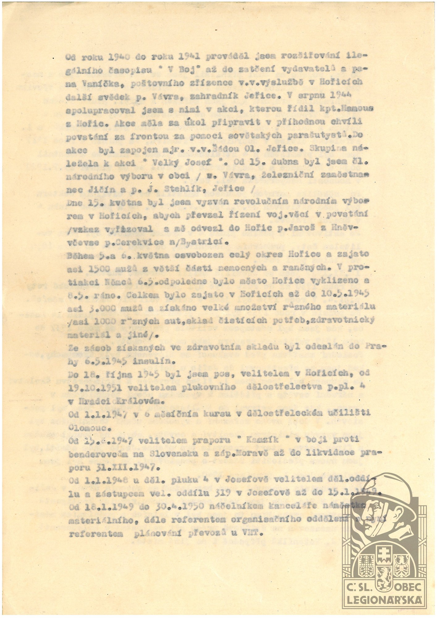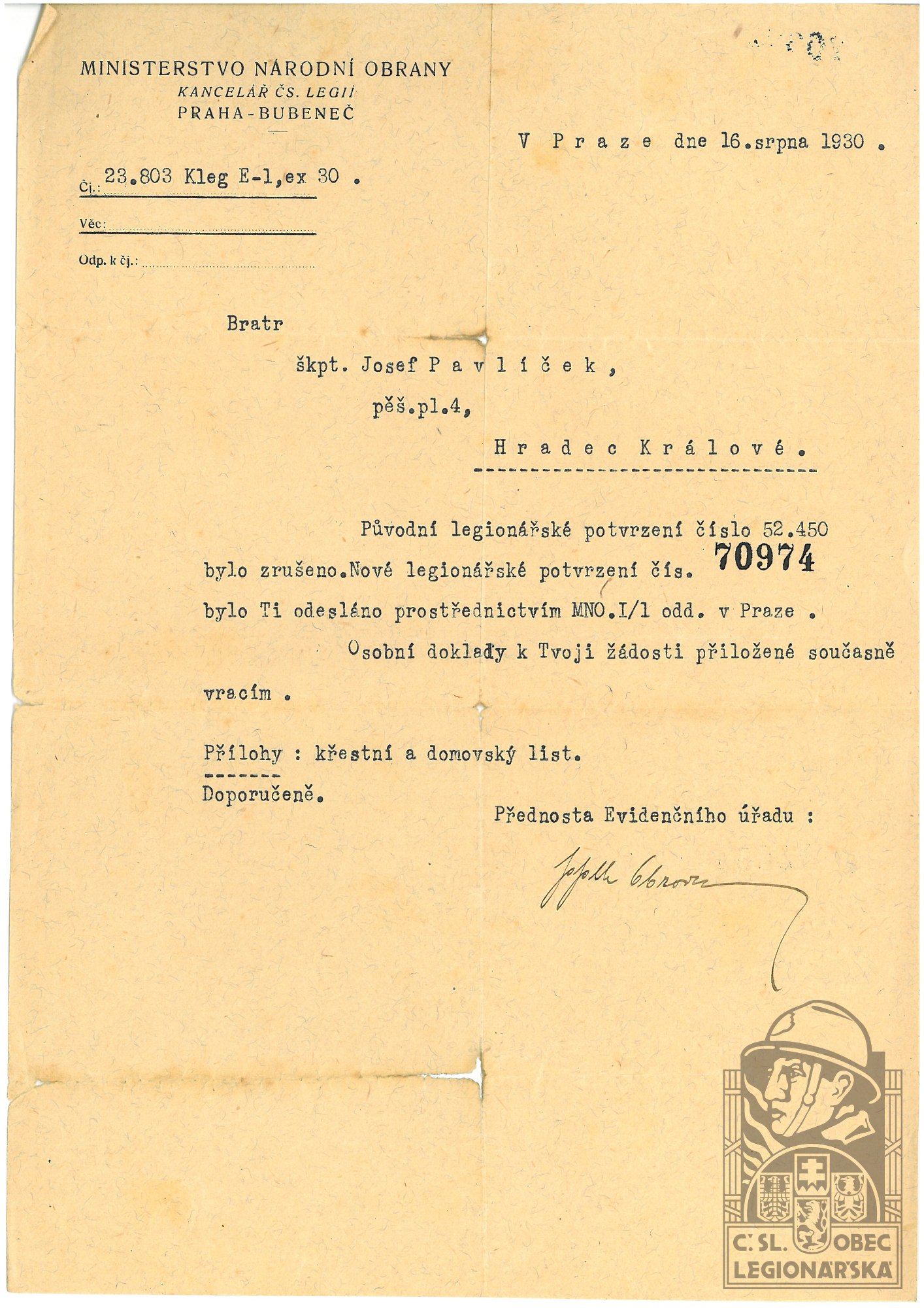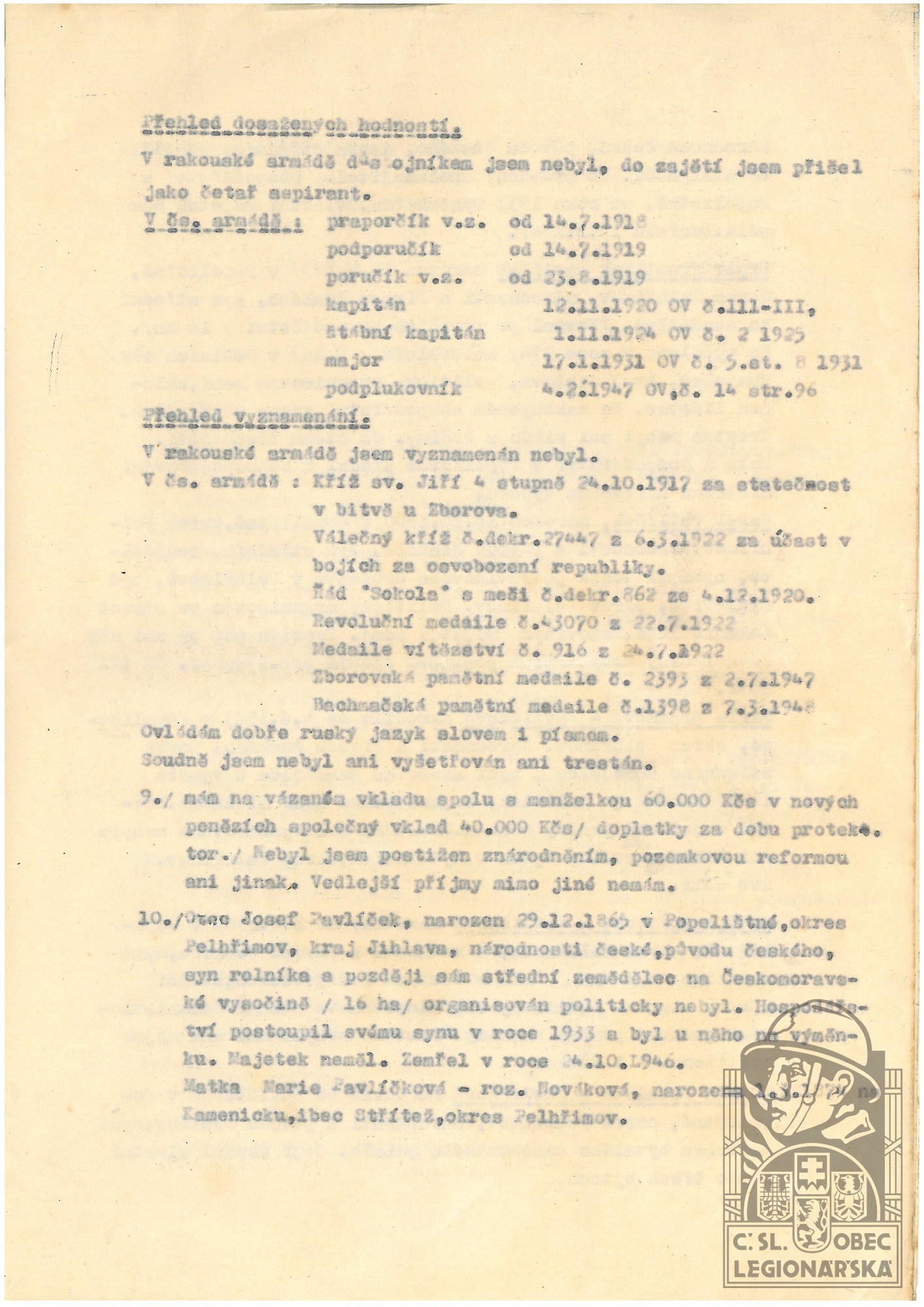 dokumenty spojené s osobou legionáře