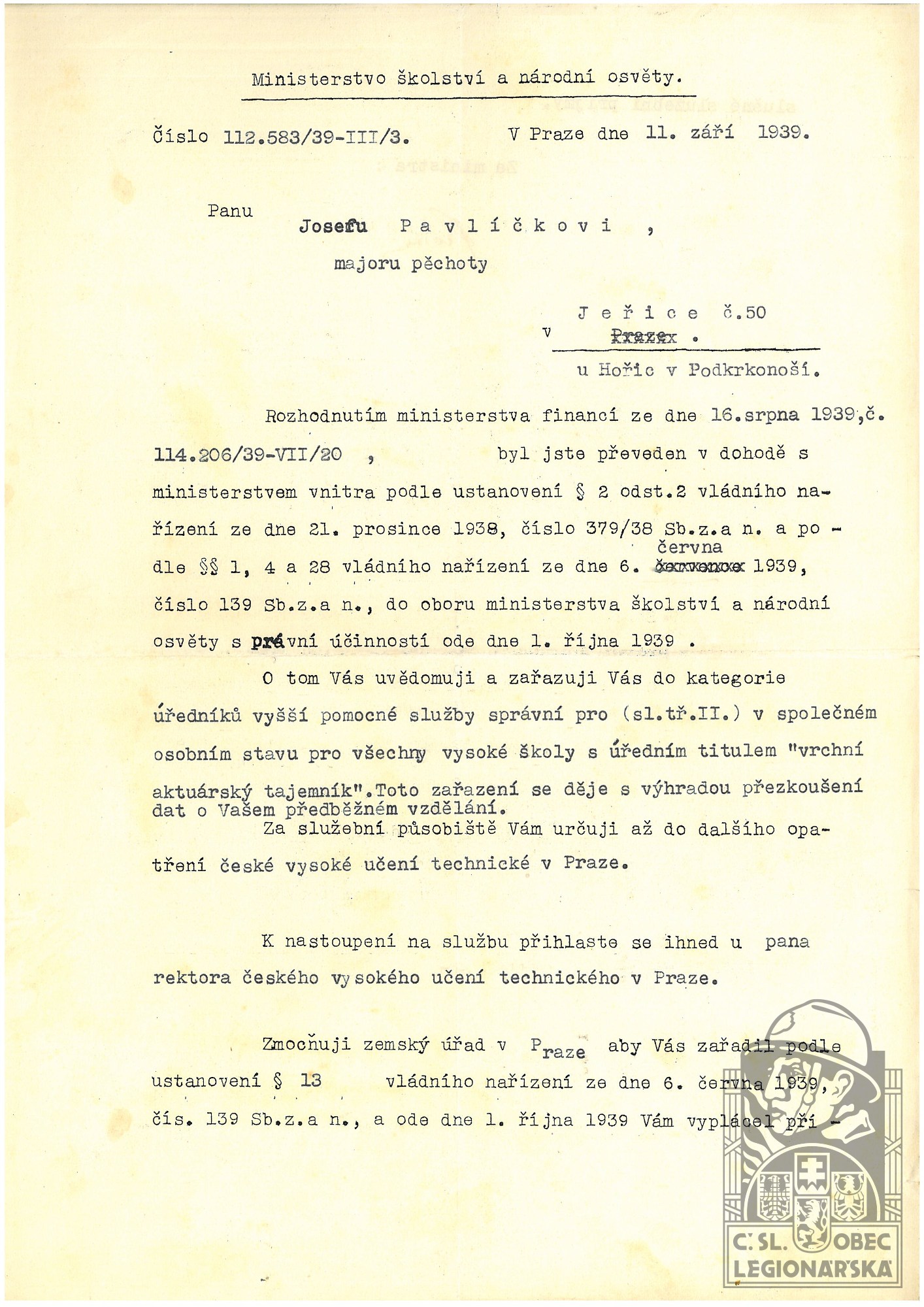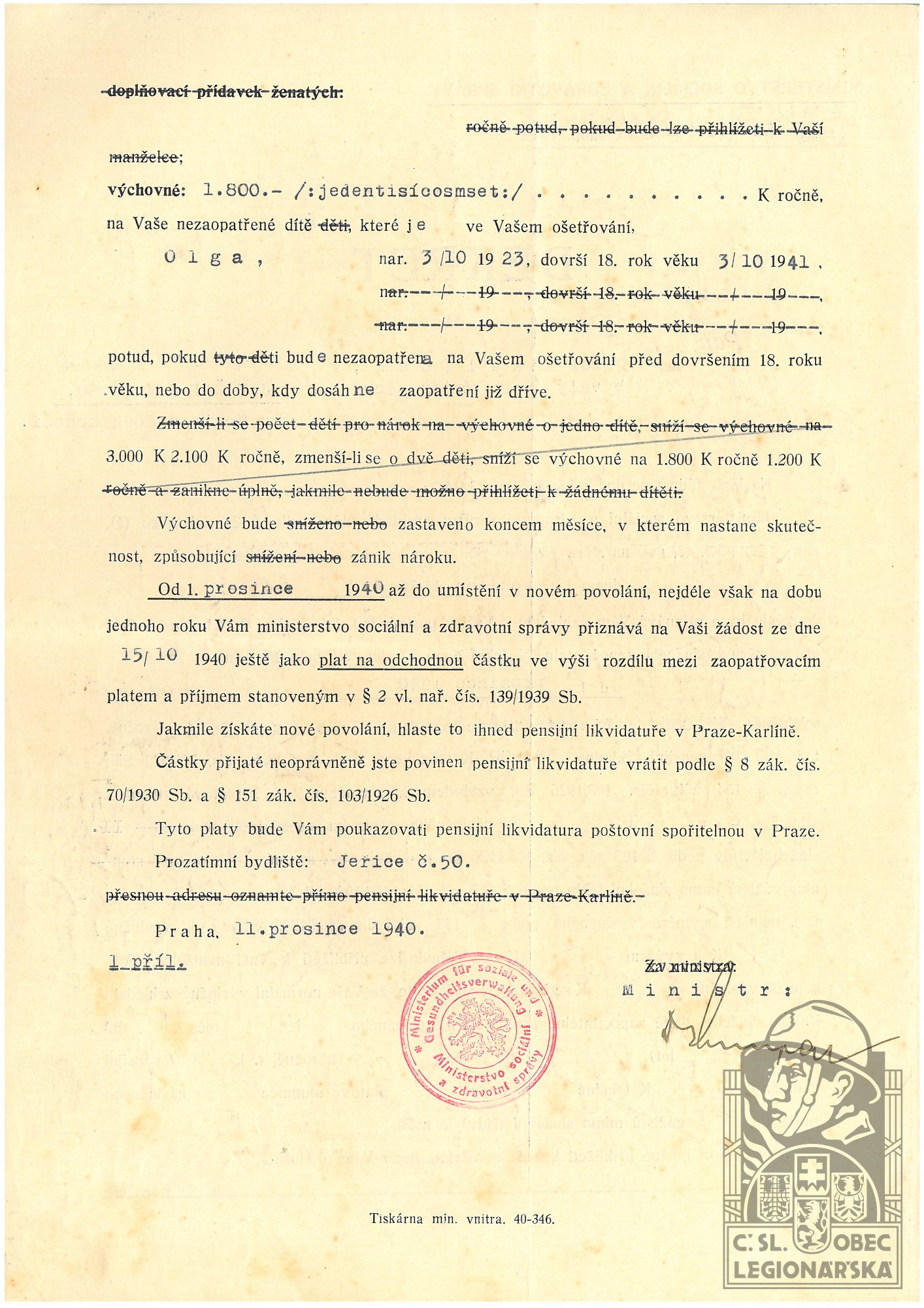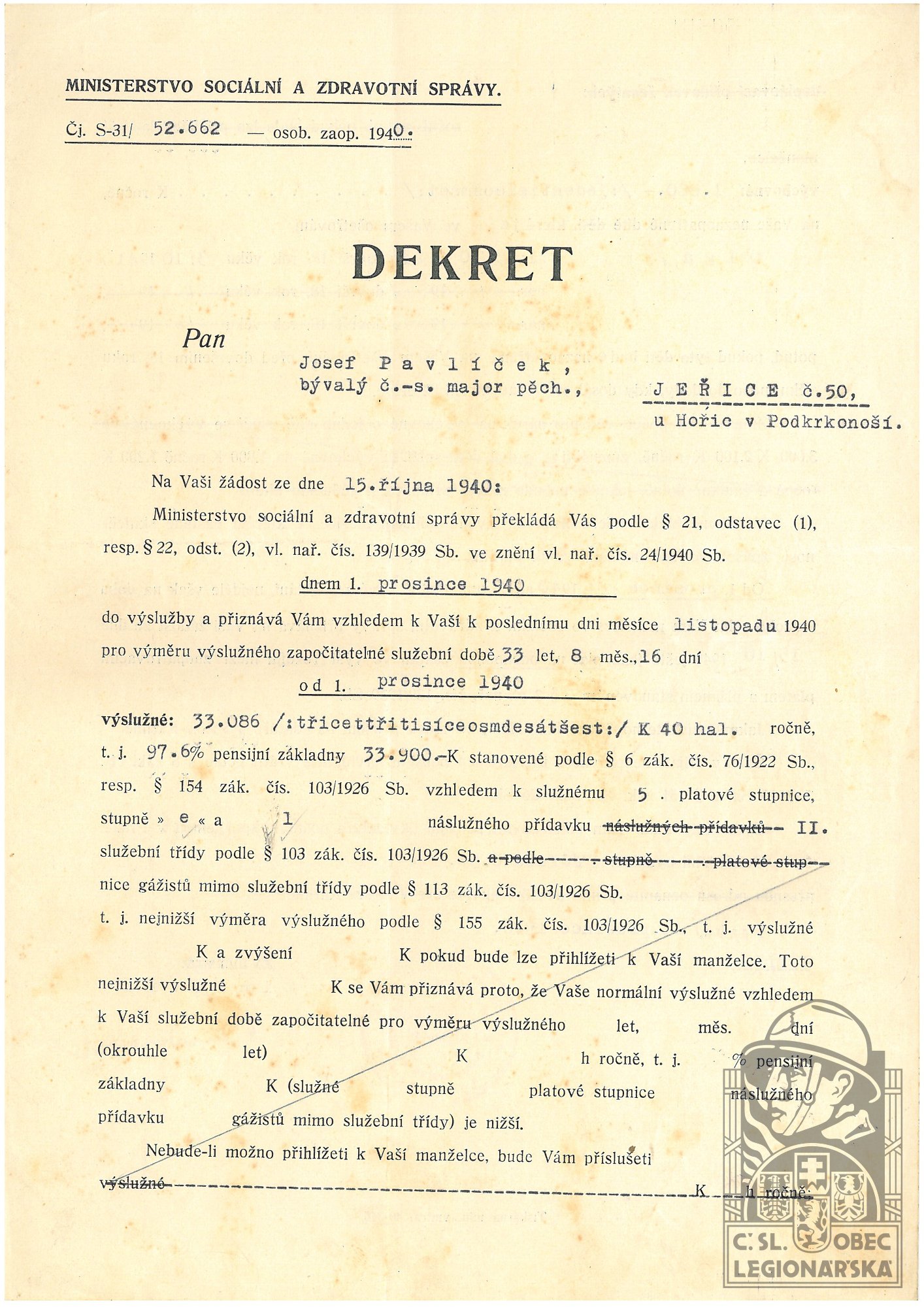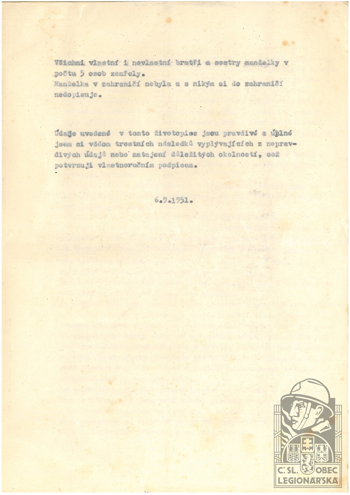 dokumenty spojené s osobou legionáře