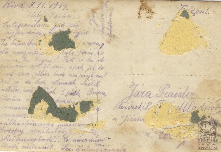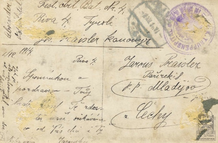 Jednotka v době zařazení:6.pl.pol.děl. ( Čs. legie v Itálii )