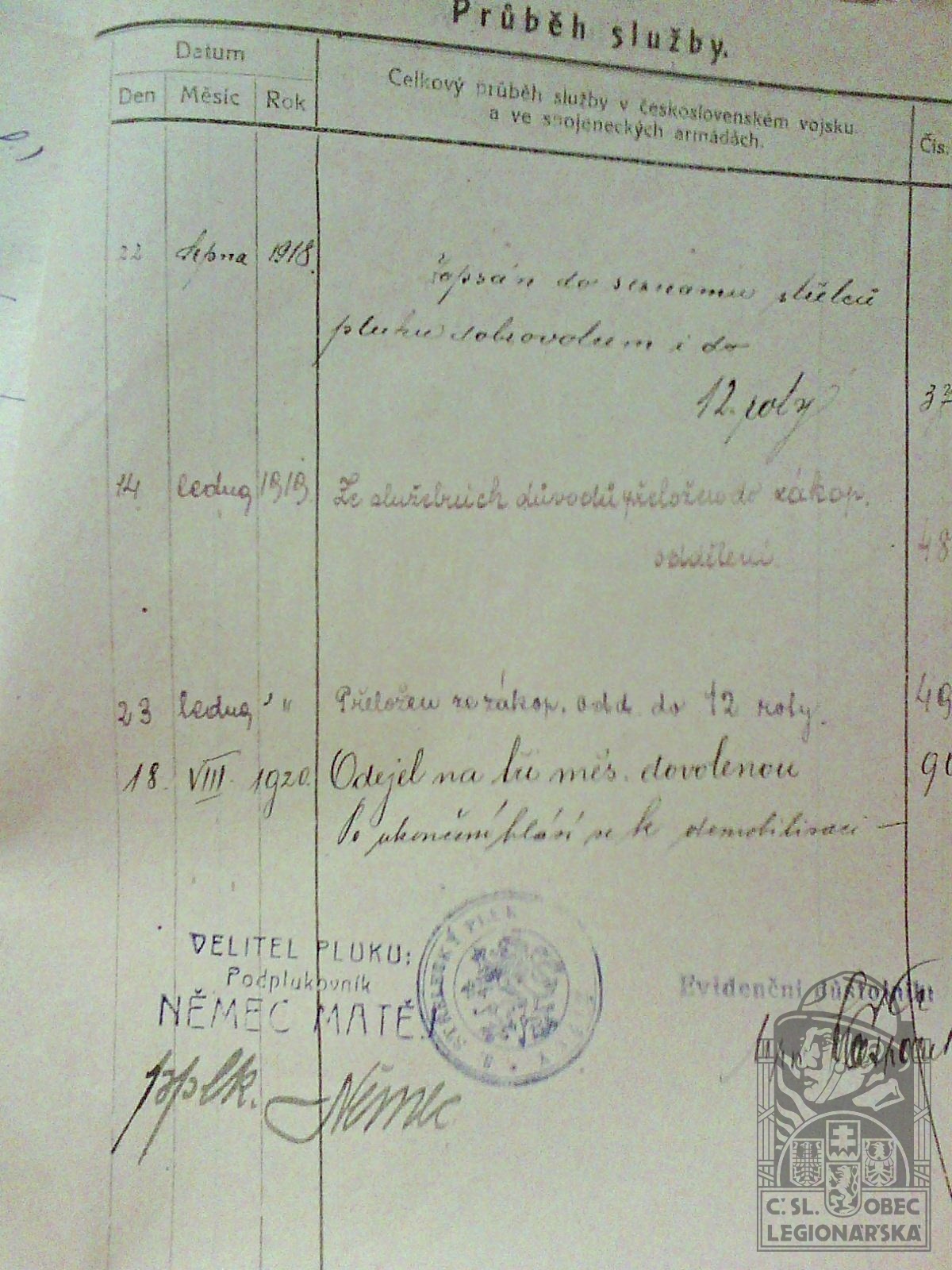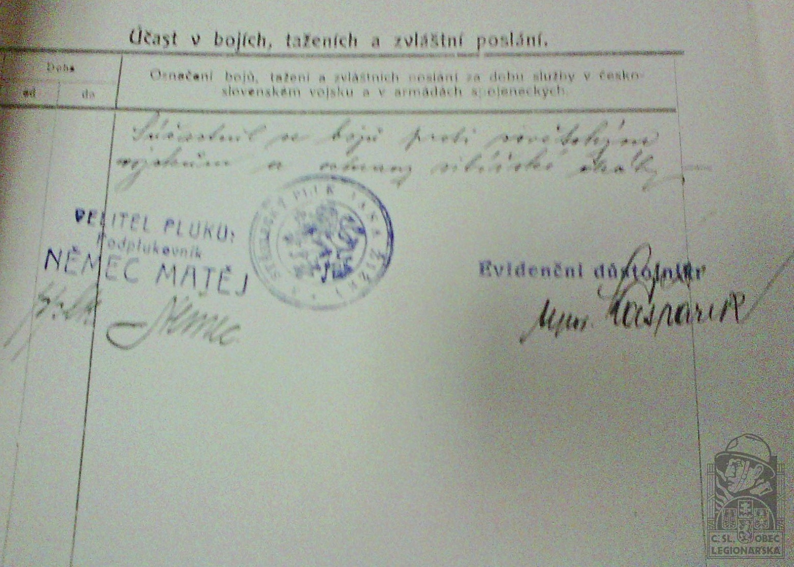 dokumenty spojené s osobou legionáře