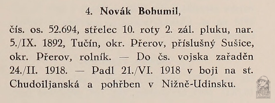 Jednotka v době zařazení:10.stř.pl. ( Čs. legie v Rusku )