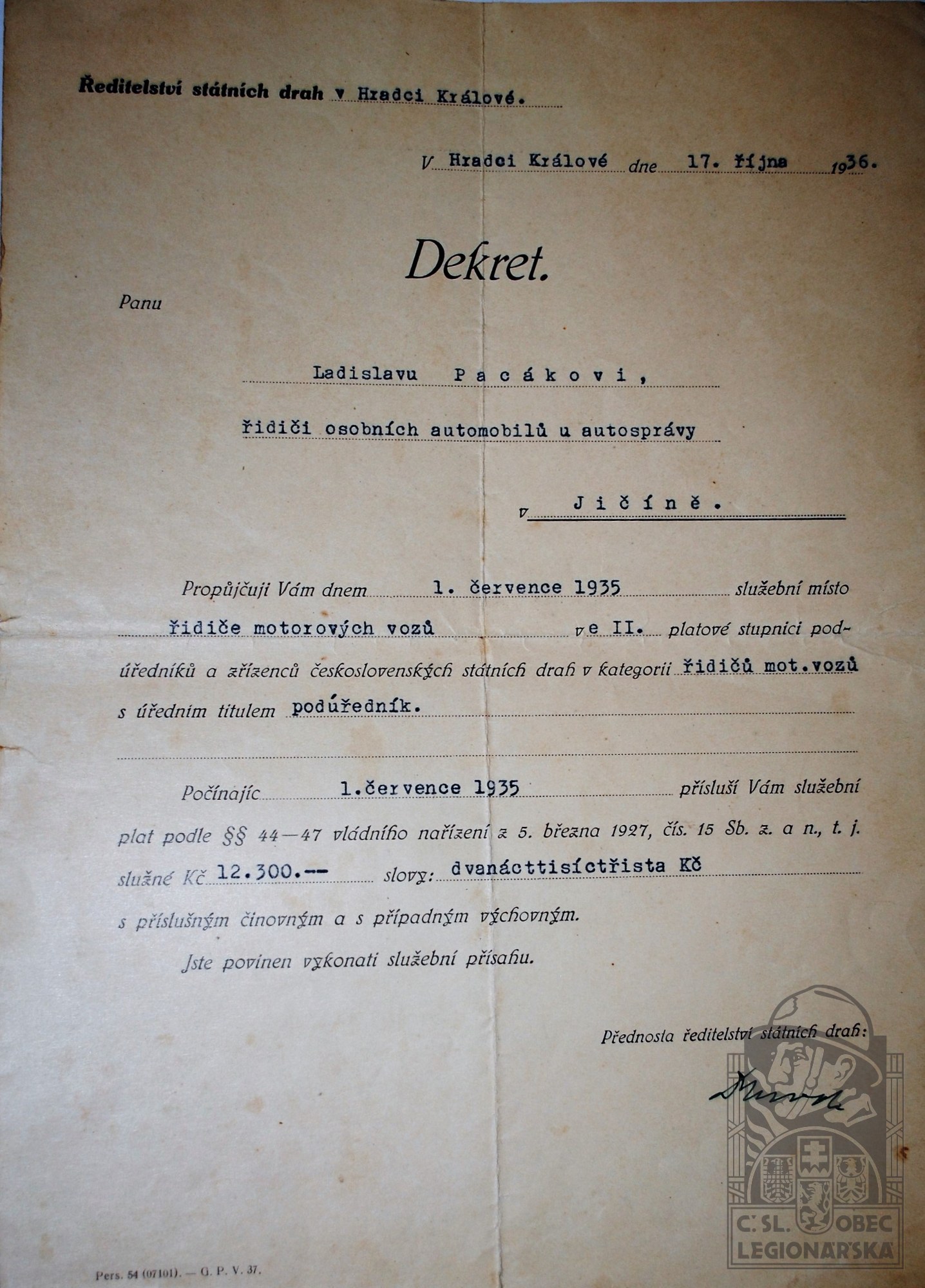 dokumenty spojené s osobou legionáře
