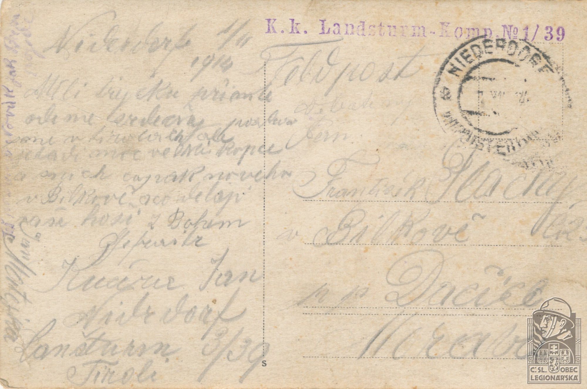 Jednotka v době zařazení:5.stř.pl. ( Čs. legie v Rusku )