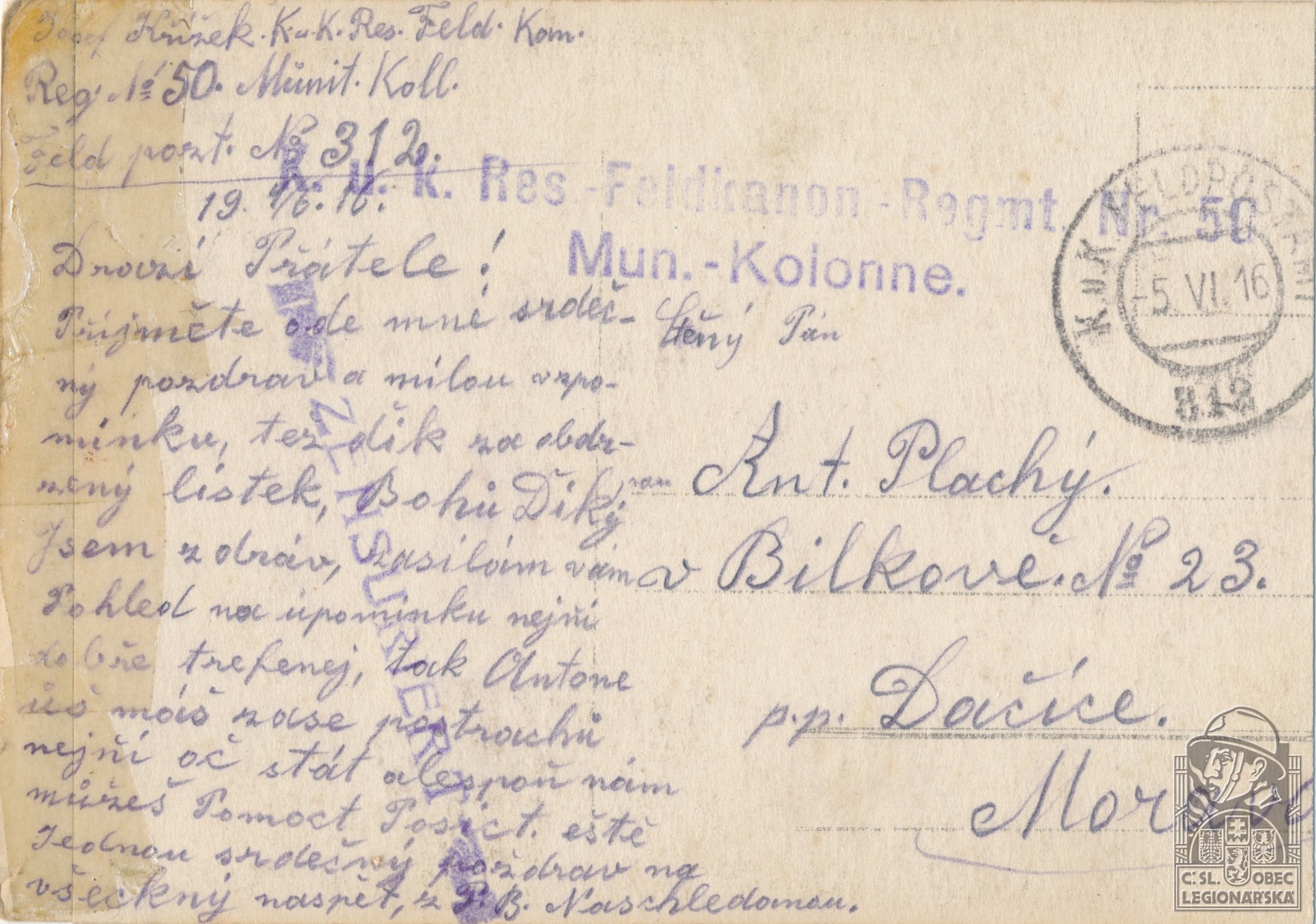 Zdroj informací: legionářský poslužný spis