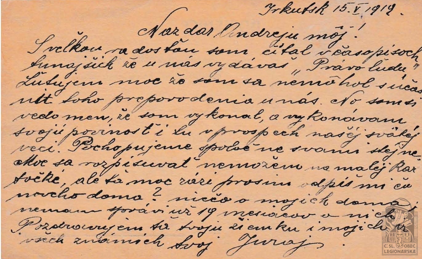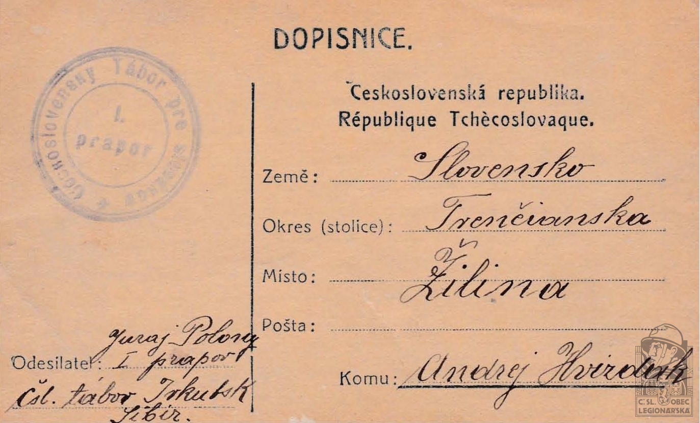 Jednotka v době zařazení:8.stř.pl. ( Čs. legie v Rusku )