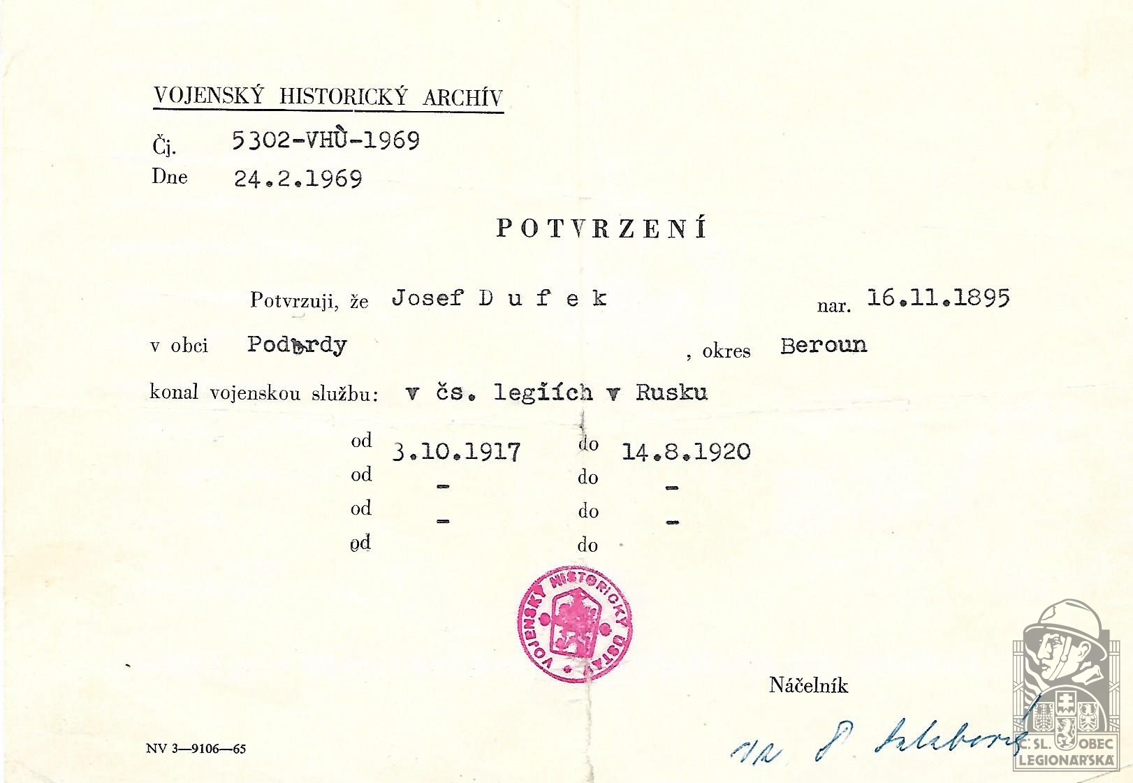 Zdroj informací: legionářský poslužný spis osobní karta legionáře