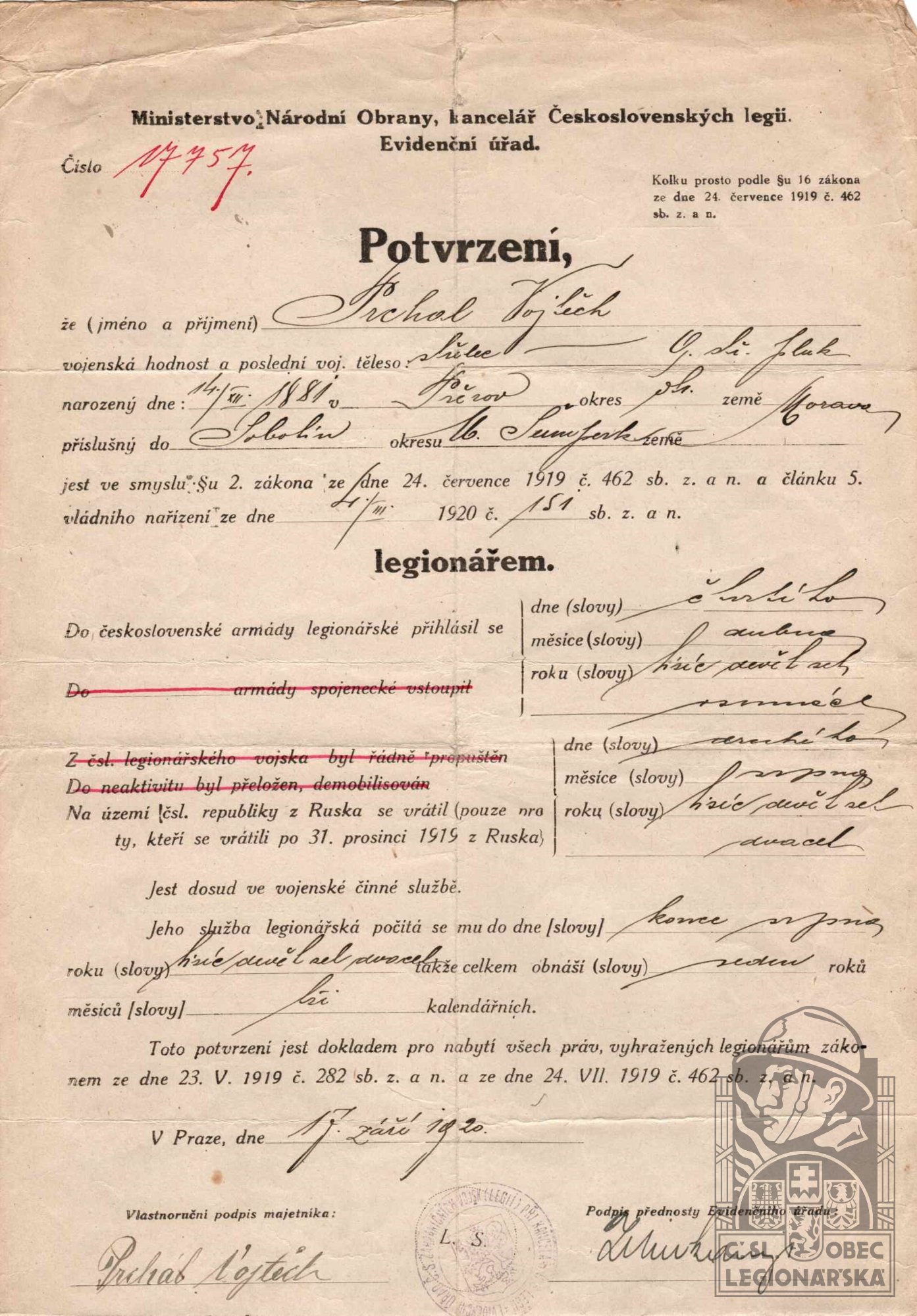 Zdroj informací: legionářský poslužný spis osobní karta legionáře