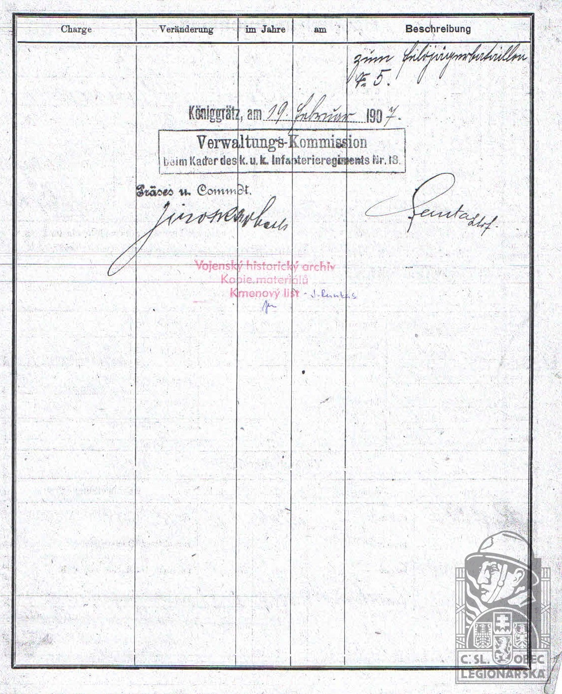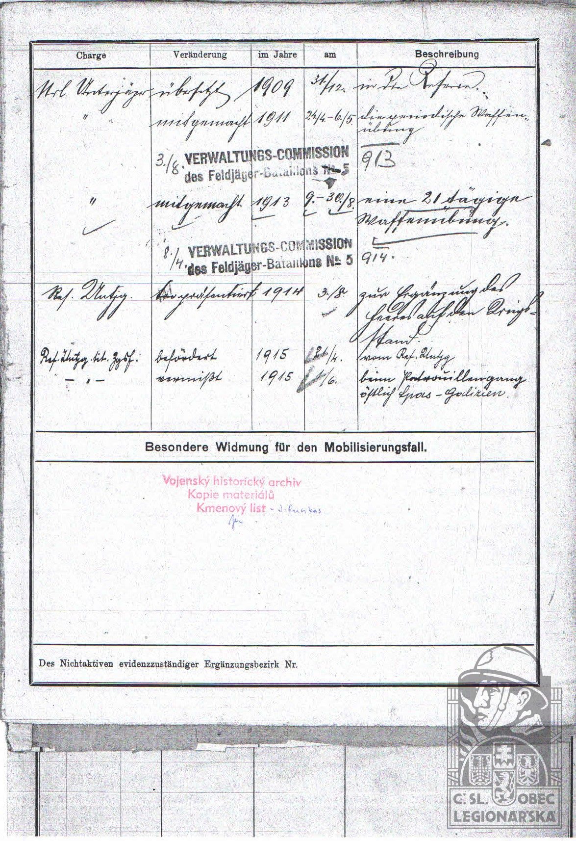dokumenty spojené s osobou legionáře