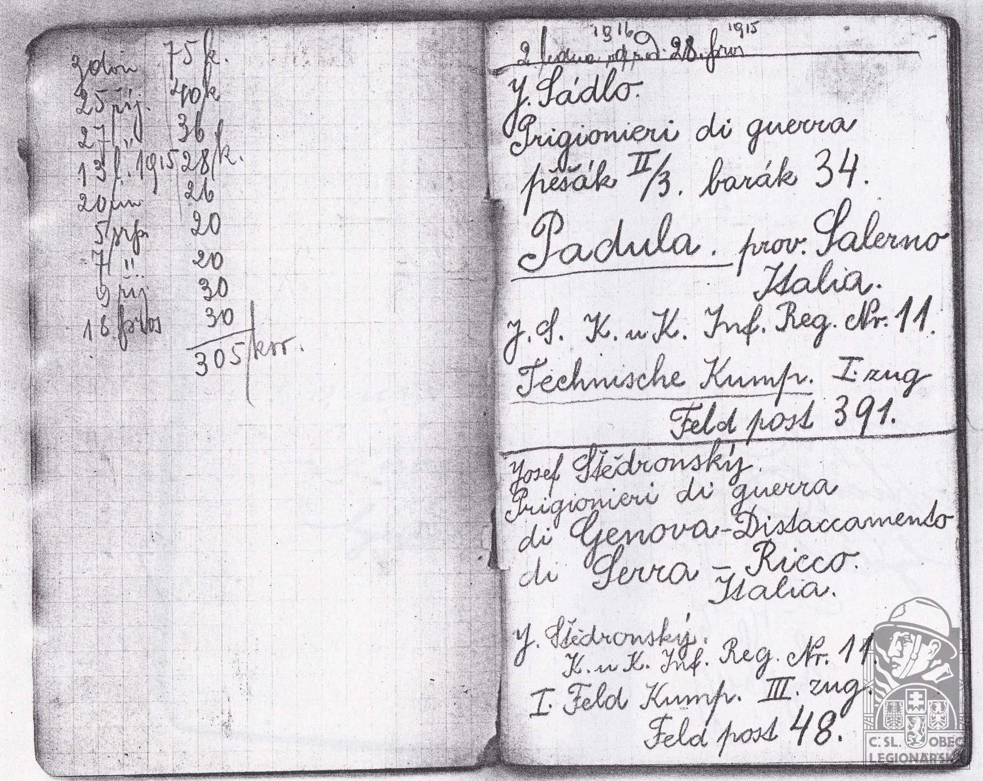 Jednotka v době zařazení:6.čs.div. ( Čs. legie v Itálii )