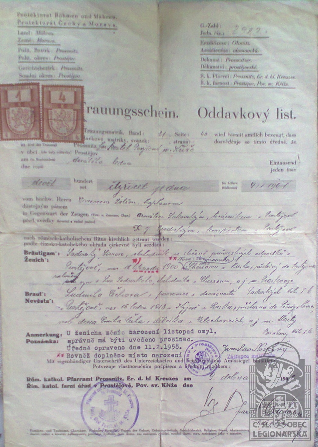 dokumenty spojené s osobou legionáře