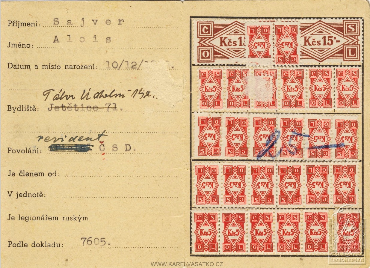 Zdroj informací: legionářský poslužný spis osobní karta legionáře