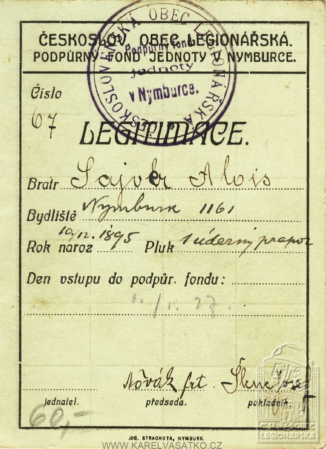 Legionářska organizace:ČsOL - podpůrný fond Nymburk / Tábor a okolí