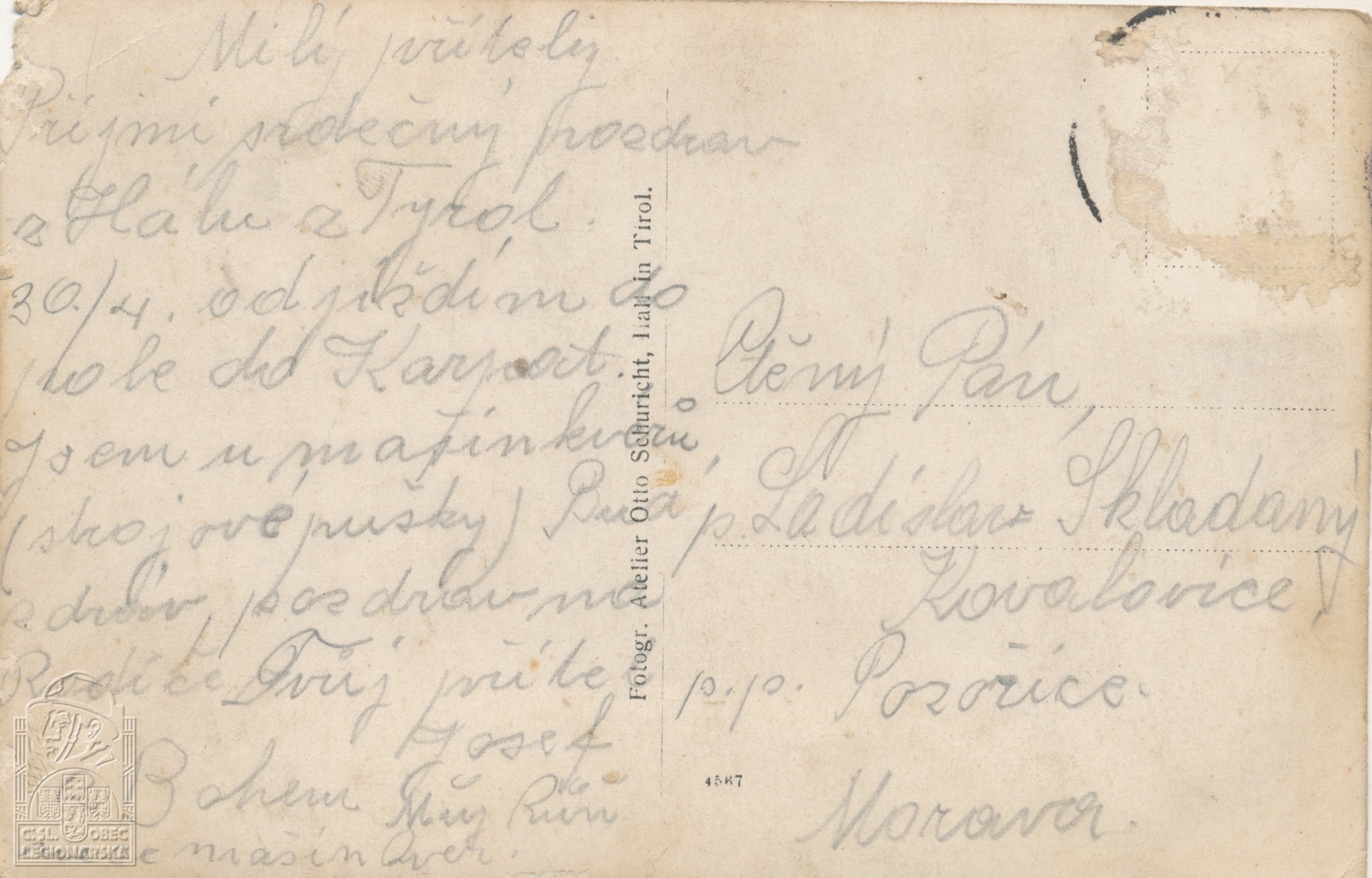 Jednotka v době zařazení:2.stř.pl. ( Čs. legie v Rusku )