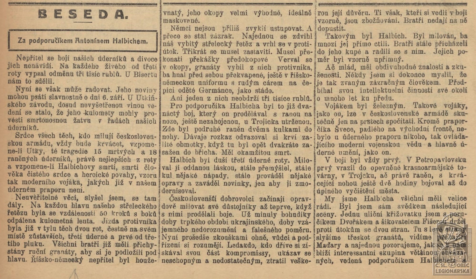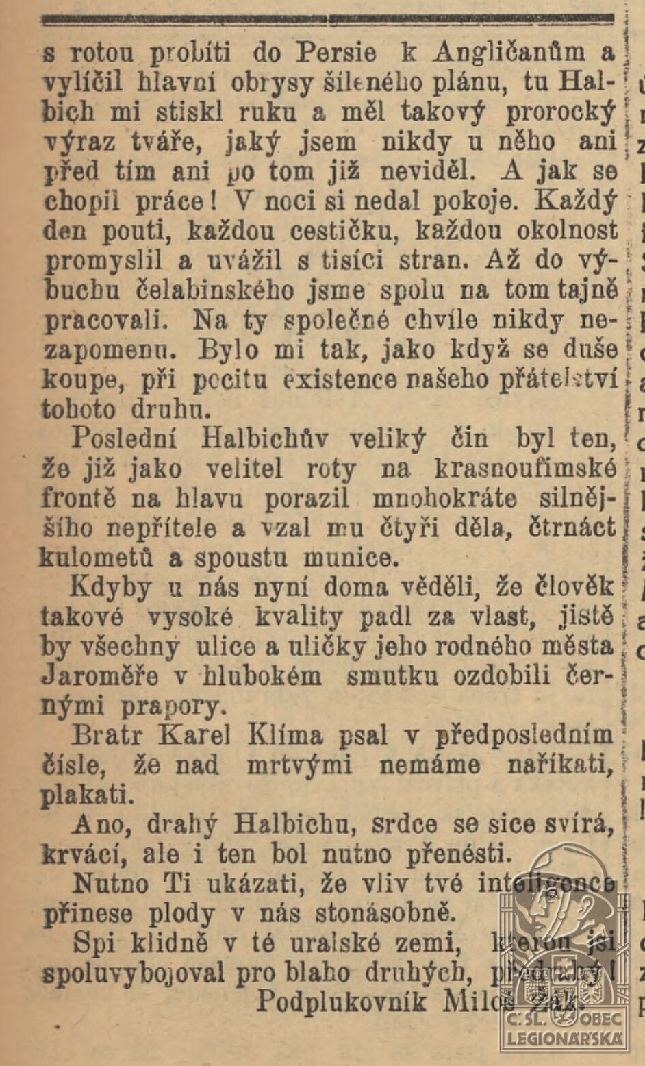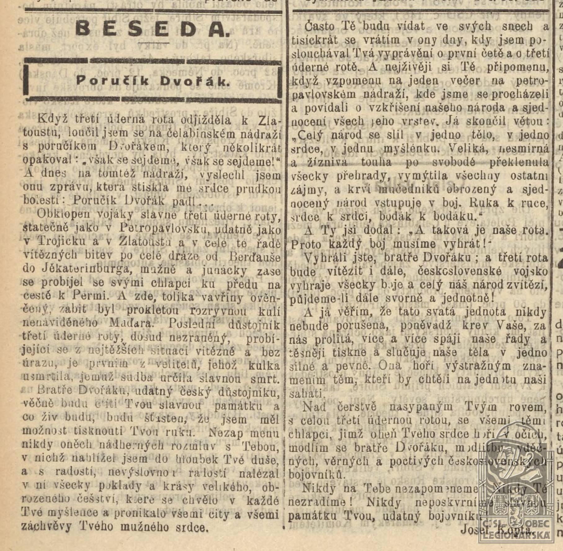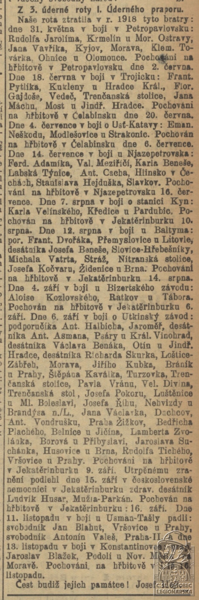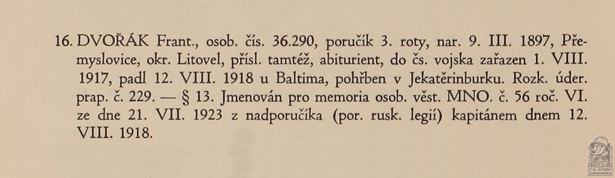 Zdroj informací: legionářský poslužný spis