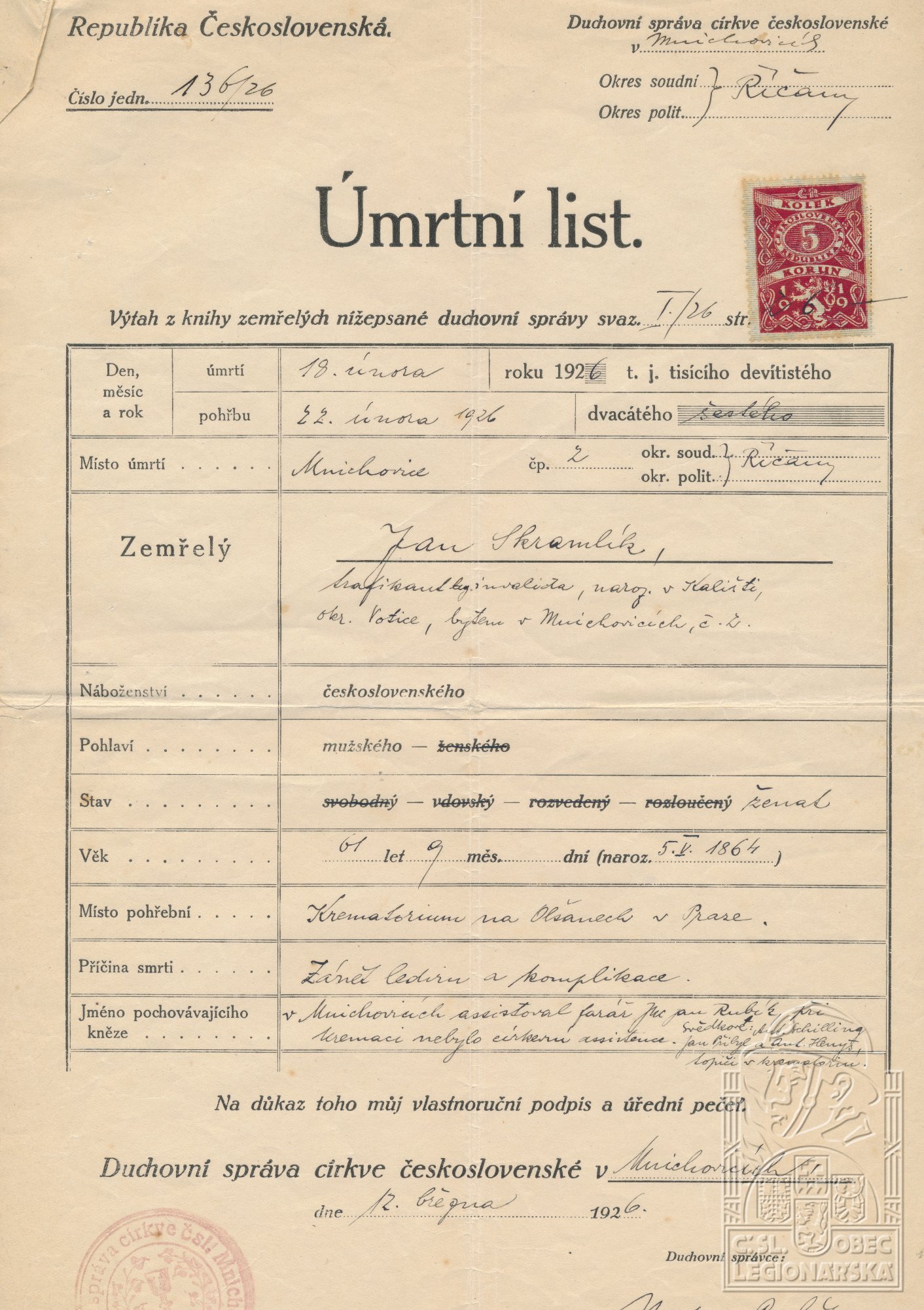 Konec v legiích:21.2.1921 ( Neschopen služby )