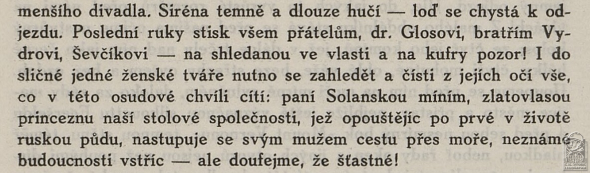 Poznámka:Do vlasti se vrátil společně manželkou Solanskou Jevgenií, roz. Kirchhofovou, nar. 13.11.1895 Petrohrad.; Jako vicekonzul odmítl v březnu 1939 rozhodnutí konzula Fr. Květoně předat konzulát v Sydney Třetí říši a zachránil tak zastupitelský úřad pro Československo. Organizoval nábor dobrovolníků do exilové armády.