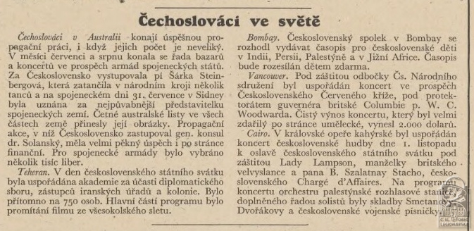 Účast v druhém odboji:generální konzul v Sydney - organizace dobrovolníků do zahraniční armády, podpora spojeneckých armád