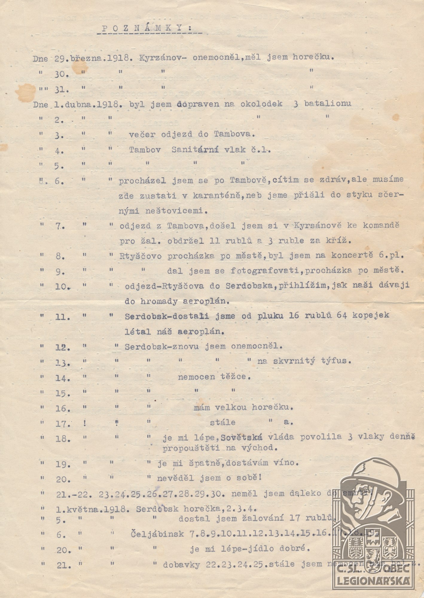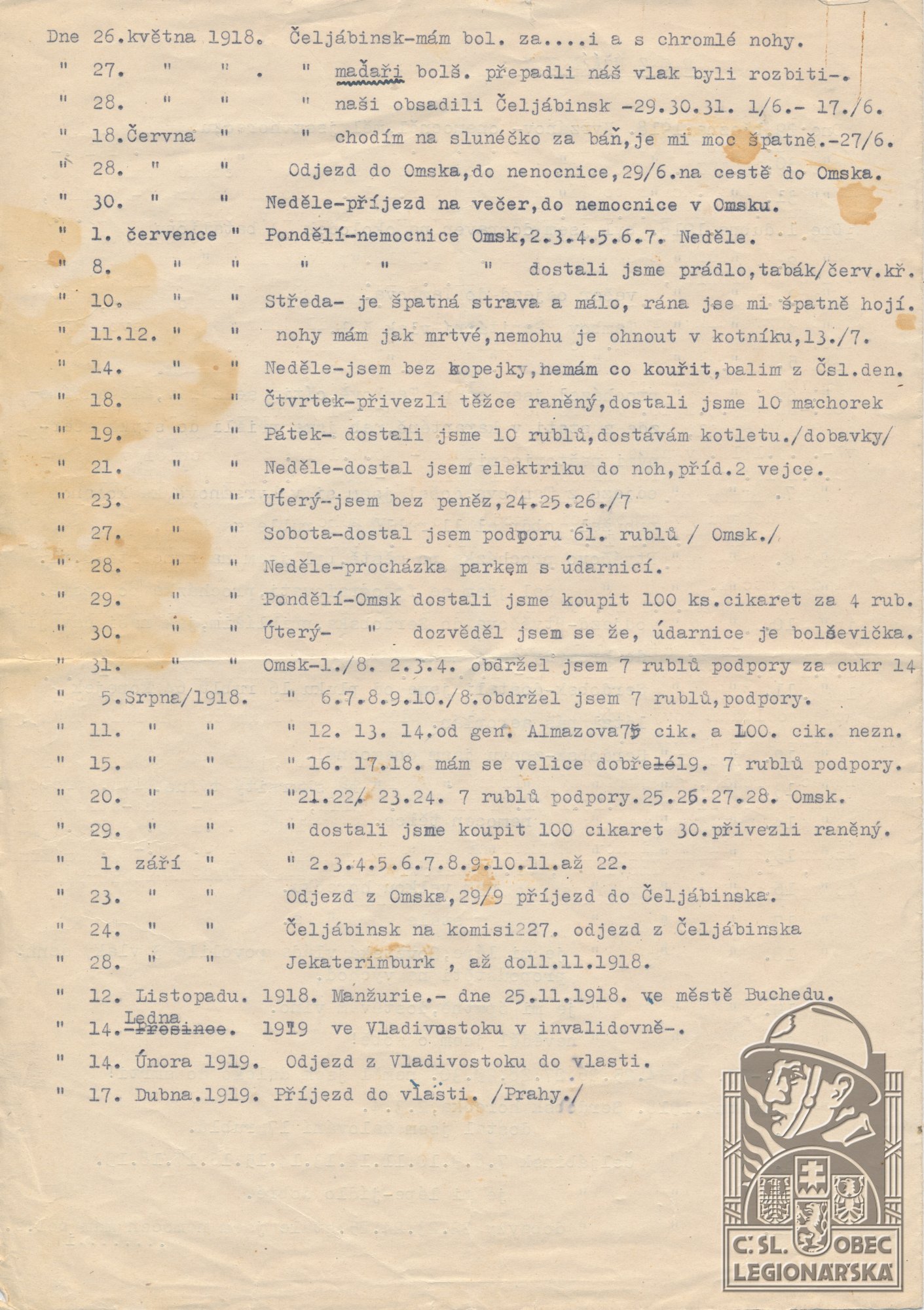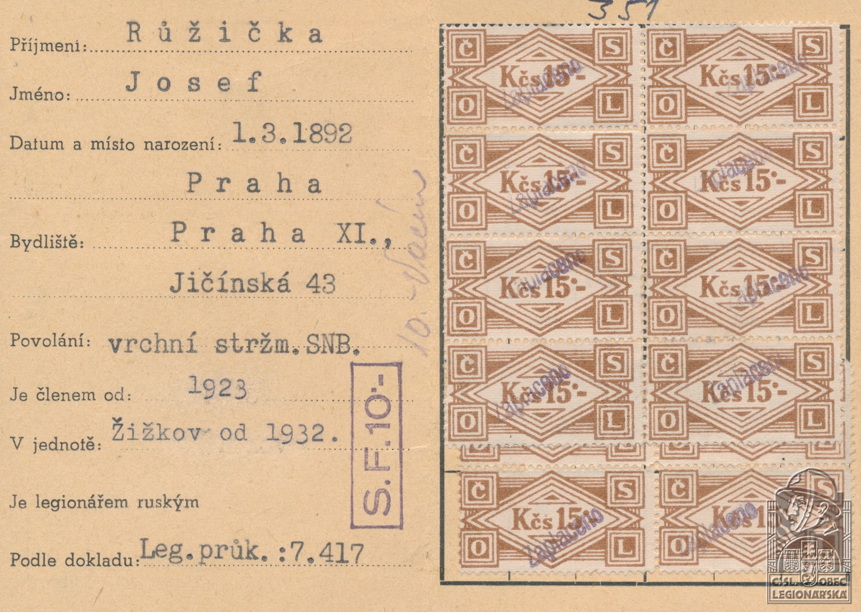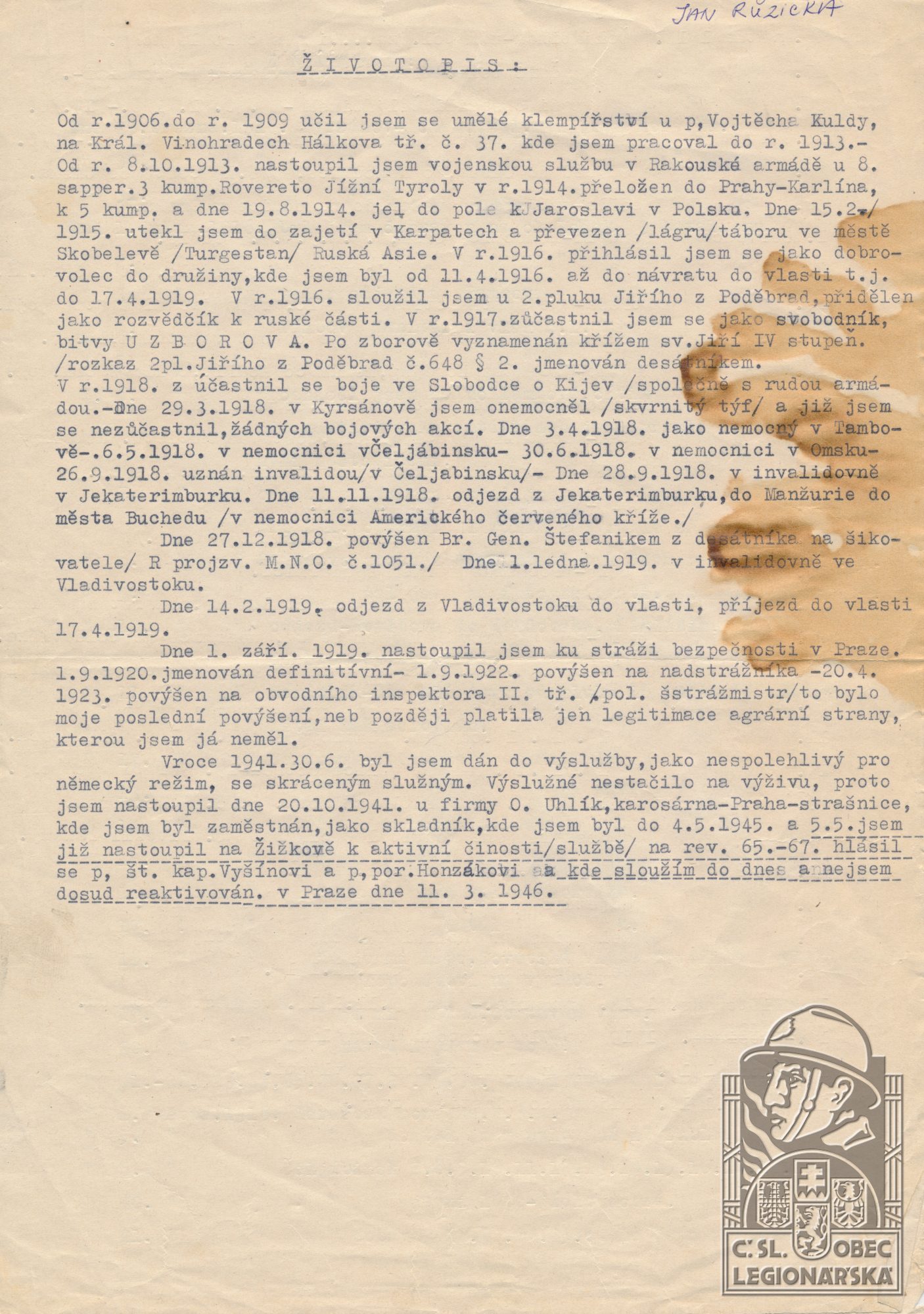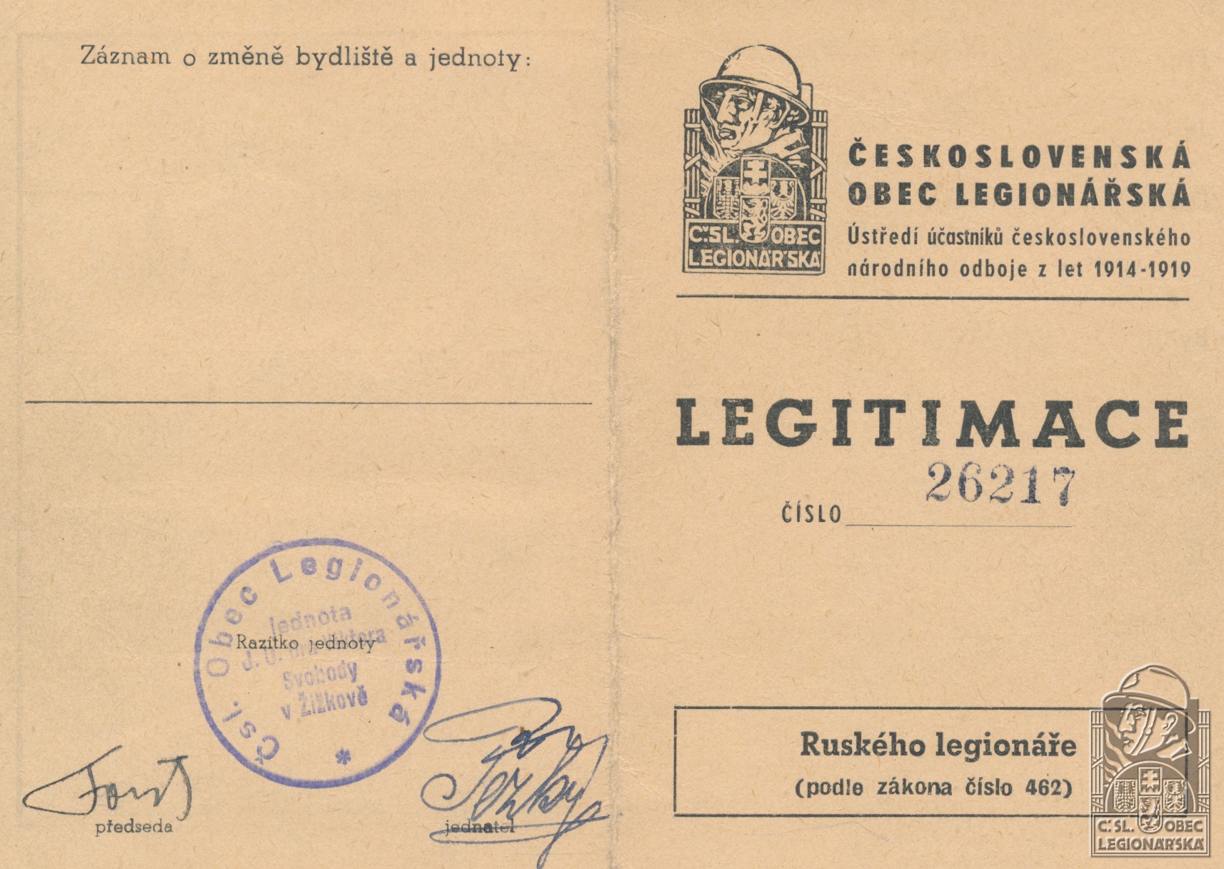 Zdroj informací: legionářský poslužný spis osobní karta legionáře