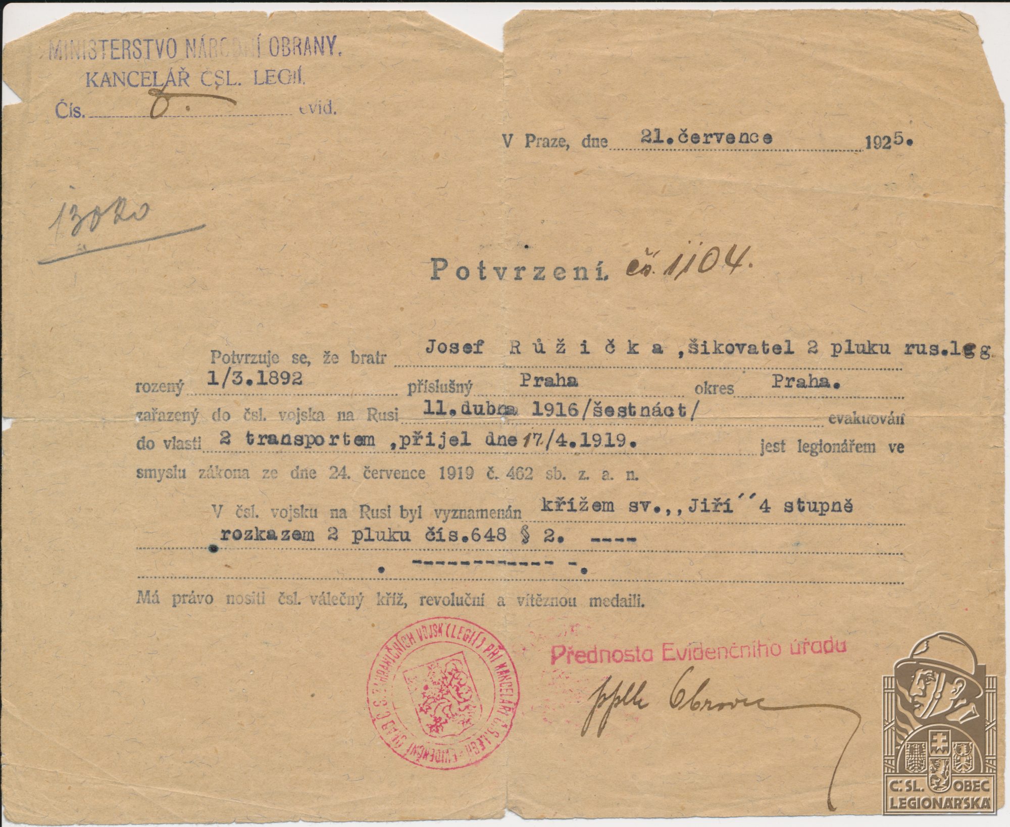 Konec v legiích:14.6.1920 ( Demobilizován )
