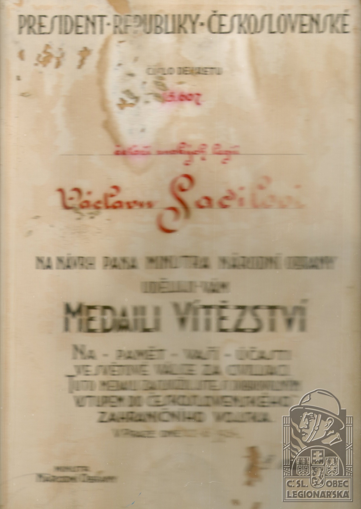 dokumenty spojené s osobou legionáře