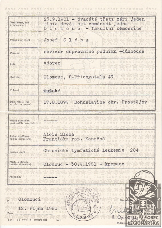 Místo úmrtí:Olomouc