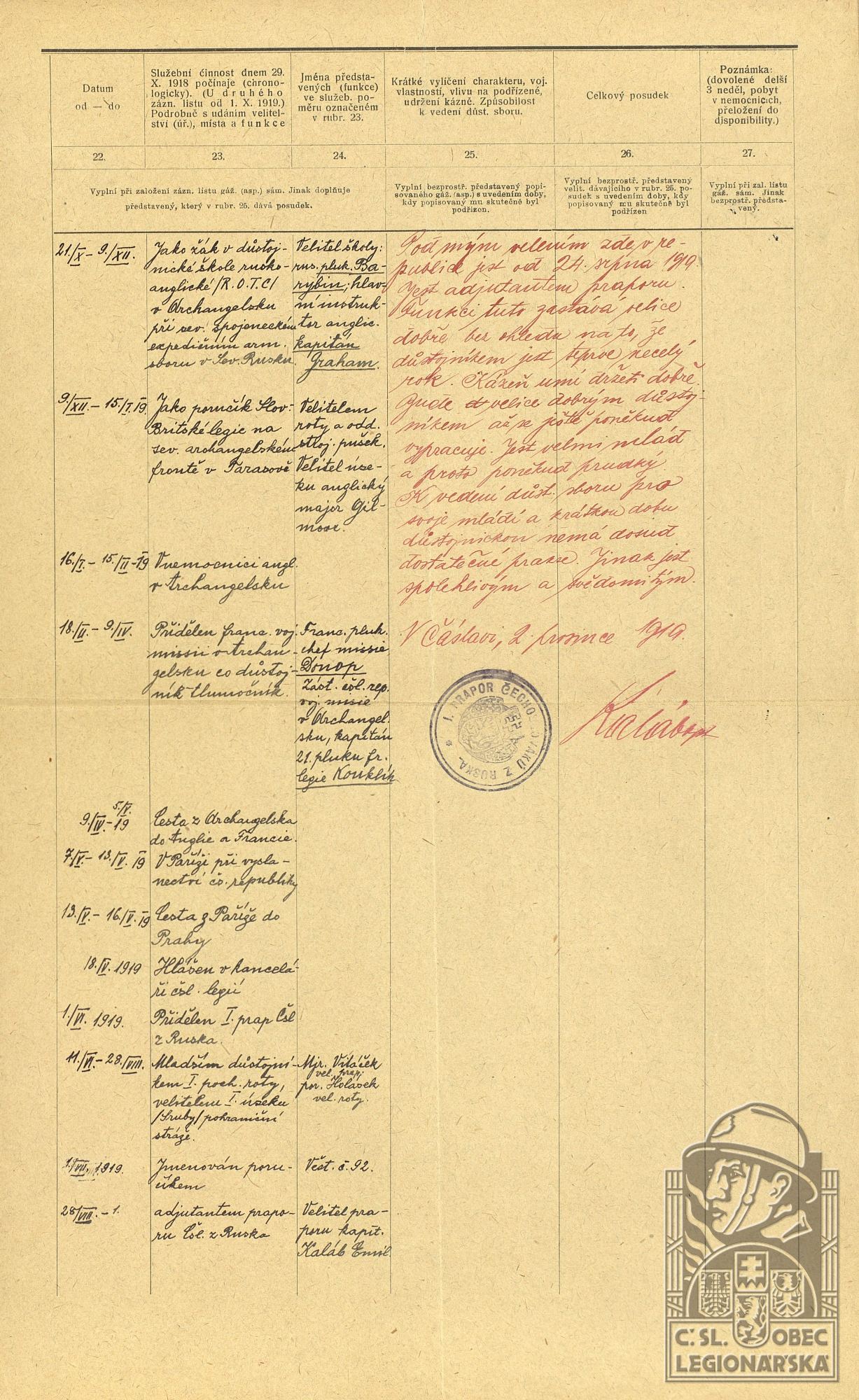 Jednotka v době zařazení:štáb 1.stř.div. ( Čs. legie v Rusku )