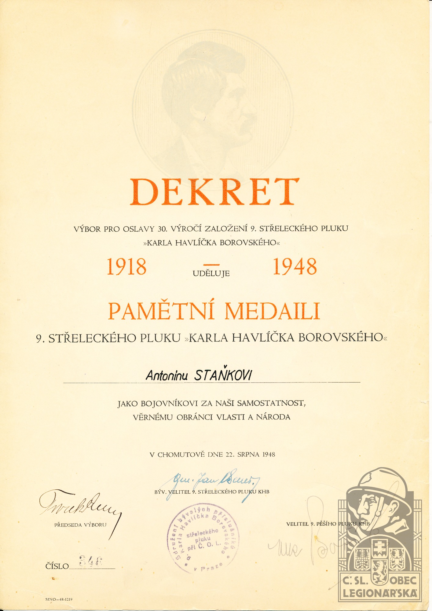 Poslední útvar v legiích:9.stř.pl.