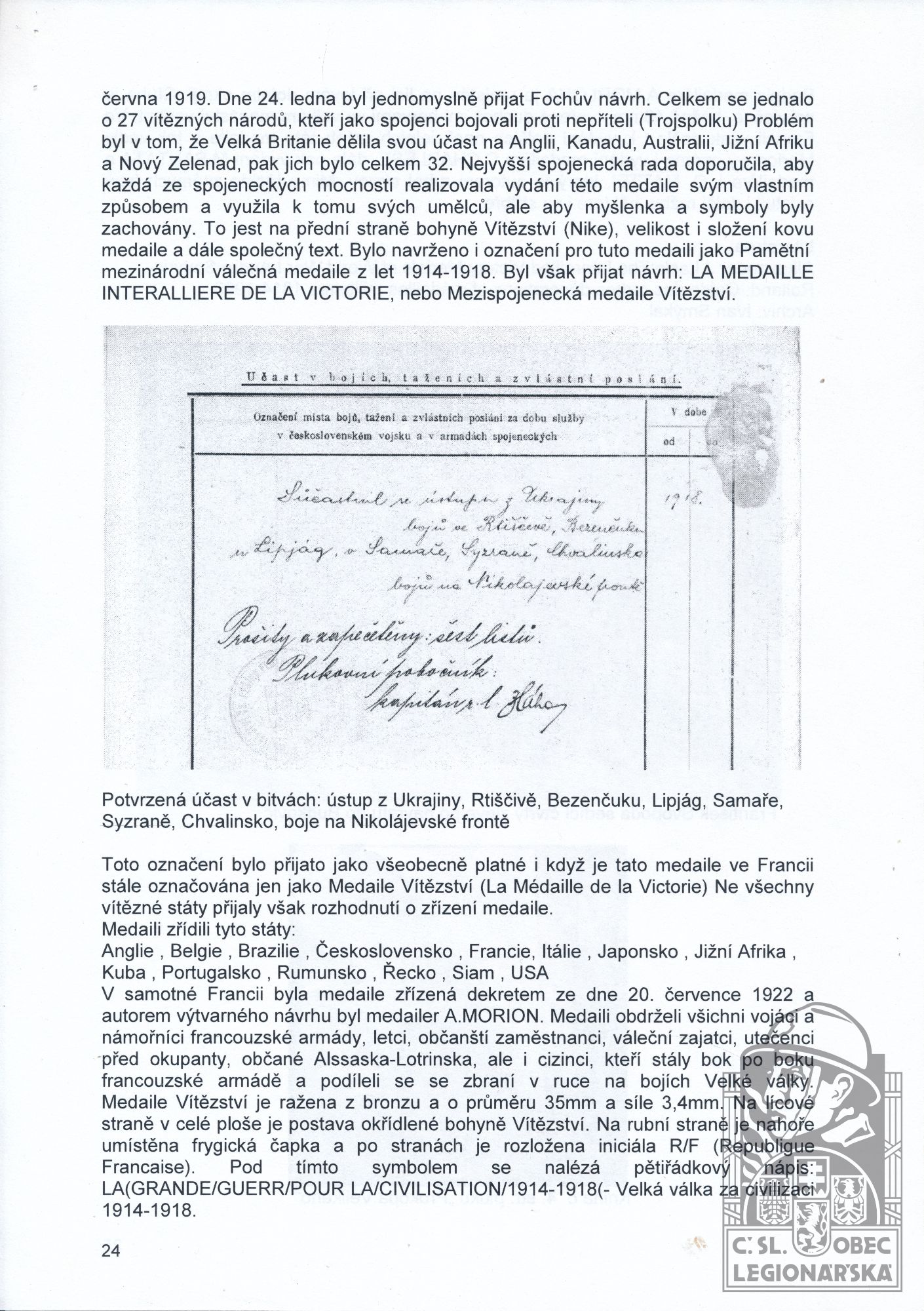 Zdroj informací: legionářský poslužný spis osobní karta legionáře
