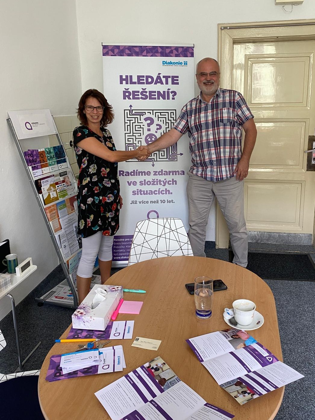 Ve čtvrtek 21. 8. 2025 navštívil vedoucí projektu Péče ČsOL o válečné veterány br. Viktor Šinkovec Poradnu pro občany v nesnázích v Rokycanech. Již před časem projednávali představitelé občanské poradny, pan Jan Neckář a paní Kateřina Polcarová, s nprap. Michalem Vondrašem z Agentury pro podporu válečných veteránů, zapojení jejich poradny do programu Péče o válečné veterány. Během čtvrtečního jednání si Viktor Šinkovec a Kateřina Polcarová vzájemně představili své projekty, vyměnili si zkušenosti a ujasnili si způsob další spolupráce pro pomoc válečným veteránům při poradenství v oblastech rodinných a partnerských vztahů, bytové problematice, pracovněprávních vztazích majetkoprávních vztazích, ochrany spotřebitele, dluhovém poradenství a dalších.