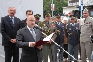 Pomník je více než deset metrů vysoký a tři postavy na něm symbolizují čin, který se v těchto místech odehrál před 67 lety. Jeho odhalením a připomenutím památky vojákům, kteří se podíleli na odstranění nenáviděného říšského protektora, tak byl splacen historický dluh našemu národu.