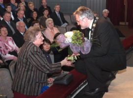 Manželce generálporučíka J. Selnera blahopřeje Dan Jiránek, starosta města Kladna.