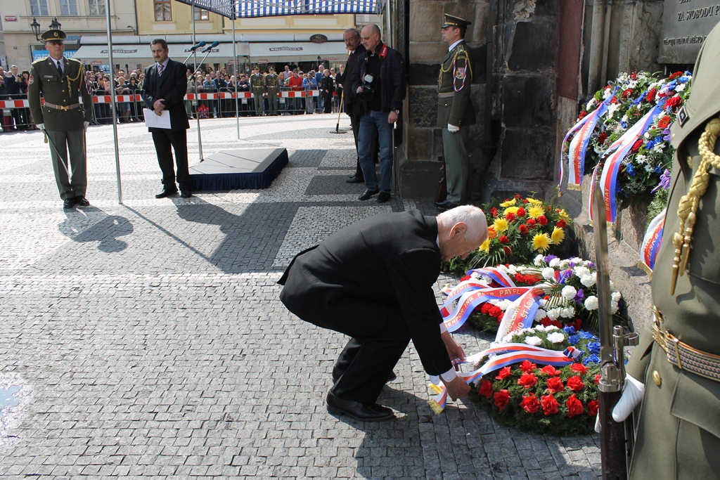Hrdinství těch, kteří neváhali na jaře roku 1945 vzít zbraň do ruky a postavit proti nepříteli, si již v dopoledních hodinách 5. května připomněli účastníci pietního aktu u na Staroměstském náměstí v Praze. Zúčastnili se ho představitele nejvyšších státních institucí, armády, občanských sdružení a také mnoho náhodných návštěvníků a zahraničních turistů. Věnec k pietnímu místu u Staroměstské radnice zde položili i představitelé československé obce legionářské, konkrétně člen Předsednictva RV ČsOL Tichomír Mirkovič, brigádní generál Miloslav Masopust a tajemník ČsOL Petr Hozlár.