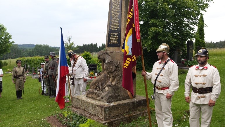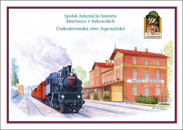 Nyní něco k samotnému doprovodnému programu, který pobyt Legiovlaku ve stanici značně oživil a setkal se s velmi kladnou odezvou návštěvníků. První akcí byla výstava v prostorách stanice o legionářích v kraji, kterou pro nás připravil ředitel jilemnického muzea pan Jan Luštinec. Martiničtí hasiči pro příchozí vystavili vedle nádražní budovy historickou hasičskou stříkačku od firmy R. A. Smejkal z roku 1889 a spolek železniční historie vydal příležitostnou pohlednici a příležitostné razítko. Autorem kresby je akademický malíř Milan Fibiger, který na akci zájemcům pohlednice osobně podepisoval. Pohlednice i s razítkem lze ještě zakoupit na obecním úřadě v Martinicích. Legiovlak byl vystaven od devíti hodin ráno do sedmé hodiny večerní. Slavnostní zahájení proběhlo v jedenáct hodin, kde také promluvil za legionáře tajemník projektu Legie 100 bratr Jiří Charfreitag. Po slavnostním zahájení k přítomným promluvil pan František Zemánek se vzpomínkou na Františka Doška, svého dědečka legionáře. Velkým oživením pro návštěvníky i fotografy bylo korzování lidí oděných v historických kostýmech. O pohodu se po celou dobu starala Dechová hudba Broďanka. Ovšem největší úspěch a ohlas měly dva fototermíny pro železniční nadšence, které zorganizovali bratr Tomáš Gál a člen našeho spolku Jiří Staněk. Legiovlak odjel dva kilometry po trati lokálky do Jilemnice a poté se zopakoval příjezd do stanice. Podél trati a na stanici byly desítky fotografů a kameramanů, kteří se snažili zachytit Legiovlak v takovémto jedinečném historickém prostoru, který se již nikde takto uceleně a zachovale nenachází. Na facebookových stránkách Železniční stanice Martinice v Krkonoších si můžete prohlédnout řadu odkazů na videa a fotografie z návštěvy Legiovlaku. Ke konci akce se ještě uskutečnil pochod uniformovaných legionářů a martinických hasičů na místní hřbitov, kde byla uctěna památka padlých ve dvou světových válkách a následně legionáři položili k pomníku věnec. Během pietního aktu autorka knihy o legionářích s názvem „Hrobům v dáli“ paní Lenka Holubičková ve svém projevu seznámila přítomné s historií padlých legionářů z obce a okolí. Zbývá konstatovat, že Legiovlak si prohlédly dva tisíce spokojených návštěvníků. Za toto patří všem, kteří se na akci podíleli, velký dík a obdiv. Je třeba s díky zmínit především Československou obec legionářskou, díky které k nám do Martinic Legiovlak zavítal. Klukům z našeho železničního spolku ještě poděkovat za to, jak zajistili a připravili zázemí a občerstvení pro legionáře v prostorách stanice. Jak je ze samotných fotografií vidno, Legiovlaku a železniční stanici Martinice v Krkonoších to spolu opravdu sluší.
