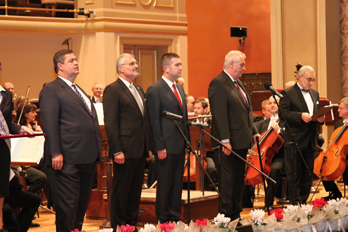 Úterní večer 27. října se v pražském Rudolfinu nesl ve slavnostním duchu za přítomnosti nejvyšších představitelů České republiky a válečných veteránů druhé světové války. Pod vedením Československé obce legionářské byl v Dvořákově síni uspořádán v předvečer 97. výročí vzniku samostatného československého státu koncert, jímž se uzavřely letošní oslavy 70. výročí vítězství v druhé světové válce.