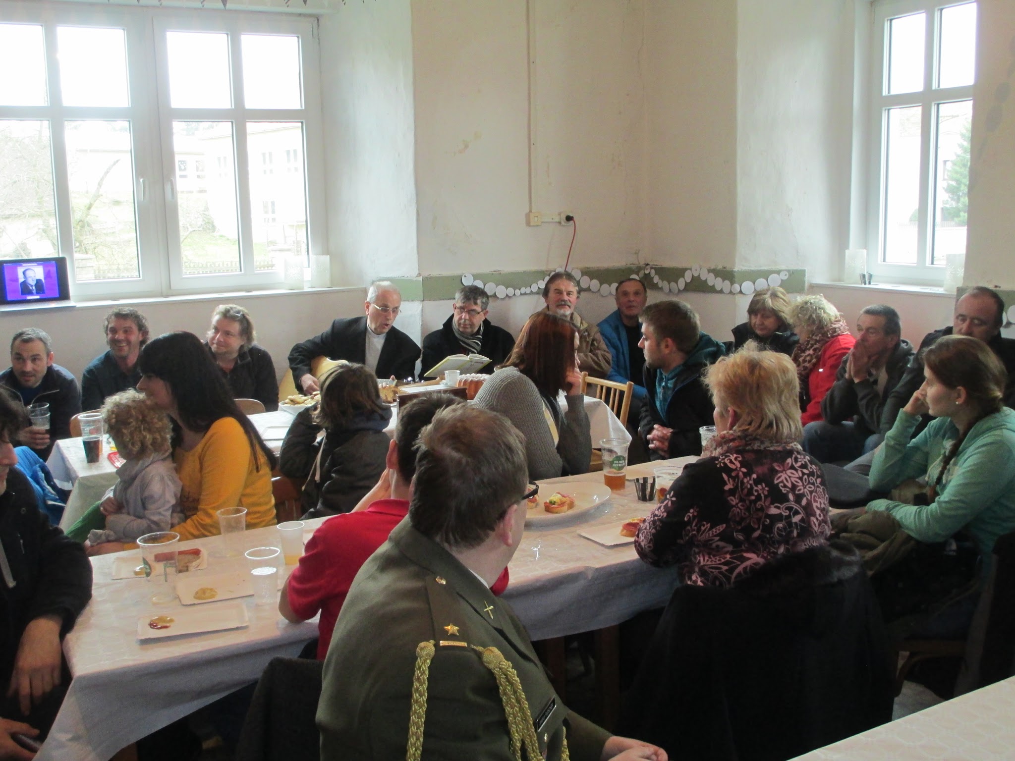 Pro účastníky vzpomínky bylo připraveno pohoštění v blízkém hostinci. Posezení se neslo ve velmi přátelském duchu, Mons. Radkovský se dokonce chopil kytary a zahrál a zazpíval si s ostatními několik písní. Atmosféra byla natolik milá, že se jen těžko loučilo. Budeme rádi, když se podaří na tuto akci navázat i v dalších letech.