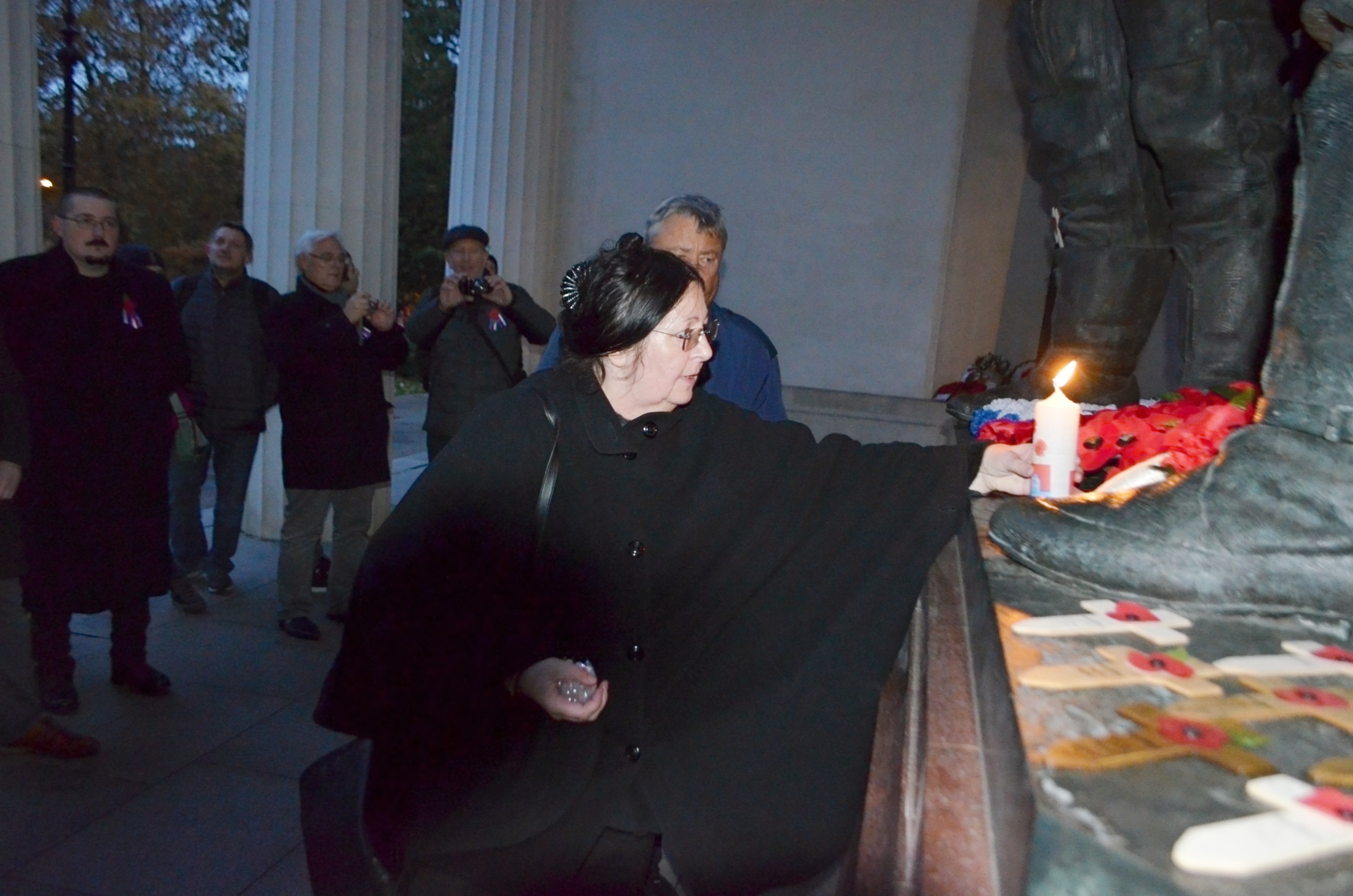 Následující den jsme uctili památku našich vojáků před Westminsterským palácem, kde jsme v místě věnovaném československým vojákům položili věneček a vztyčili dřevěné křížky. Zakoupením křížků a odznaků jsme přispěli na Britské legie. Následoval pietní akt u pomníku letecké bitvy o Británii (THE BATTLE OF BRITAIN). Tento bronzový reliéf dlouhý 25 metrů zobrazuje všechny vojenské odbornosti i civilní profese a je na něm uvedeno 88 jmen Čechoslováků, kteří se do bitvy o Británii v srpnu a září 1940 zapojili. Na desce pomníku, kde jsou uvedena jména letců Aloise Vašátka a Josefa Koukala, svíčku zapálili pozůstalí Ladislav Truhlář a Ivan Holeček. Na druhé straně pomníku svíčku položil válečný veterán Josef Švarc a Ladislav Truhlář. Poté zazněla československá hymna.