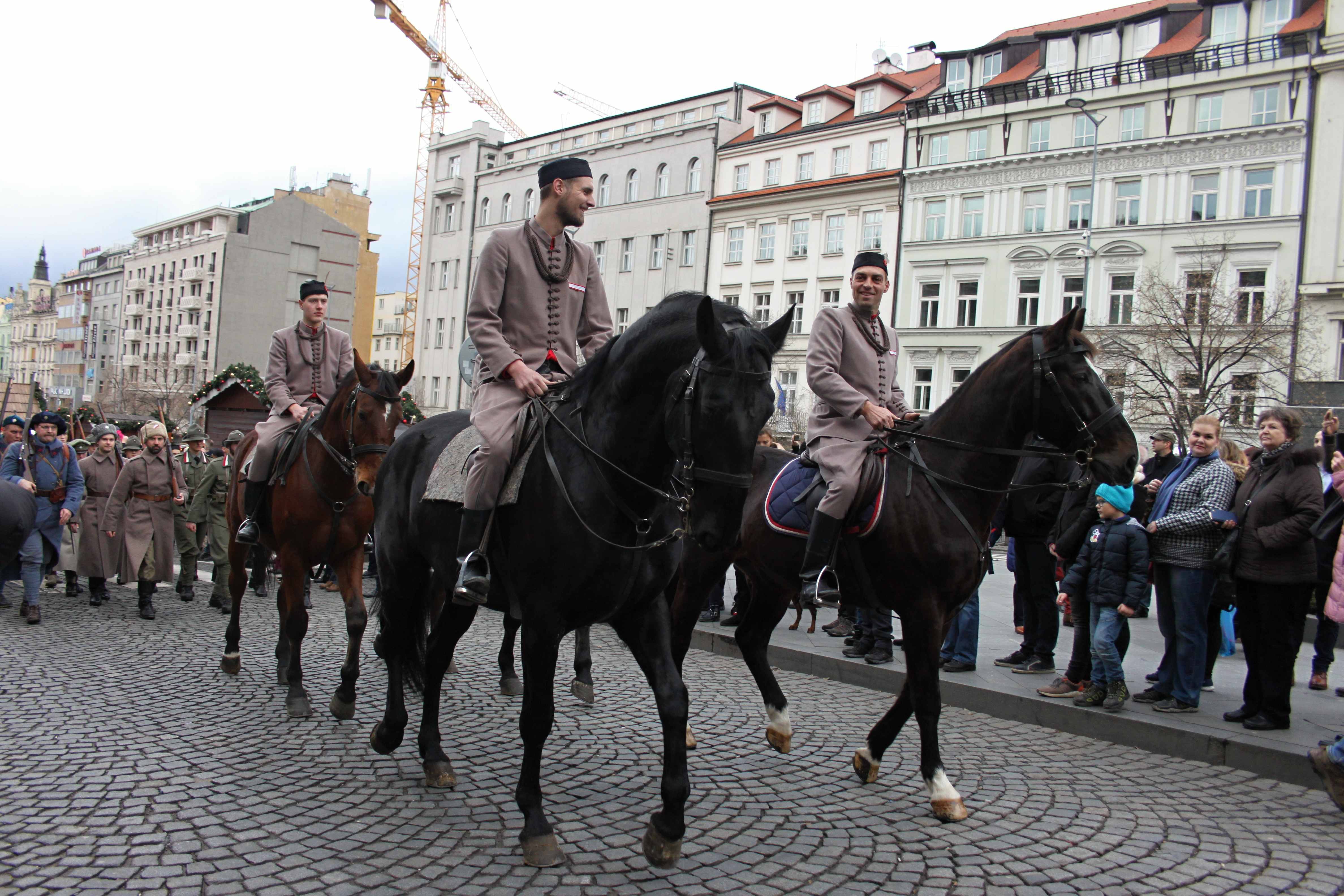 V Českých Budíkovicích by chtěl hrát každý. Tedy až na mě. Je neskutečná zima. Jinak je město nádherně předvánoční, přivítání velmi mohutné, a to jak do počtu zapojených finančních prostředků, tak do zúčastněných osob. Tady představuji profesora Františka Zdráhala, prší. Sice drobně, ale vydatně. První přivítání je na peronu, pak Masaryk míří kočárem taženým koňmi v čele průvodu na náměstí. My jedeme autem legionářů také na náměstí, vykládáme kostýmy a rekvizity. Protože je čas, pěkně se s Masarykem projdeme kolem dokola budějovického náměstí. A to hned dvakrát. Sokolové, kteří tvoří stráž okolo Masarykova vozu, žertují o klobásách. A ty tu opravdu voní…