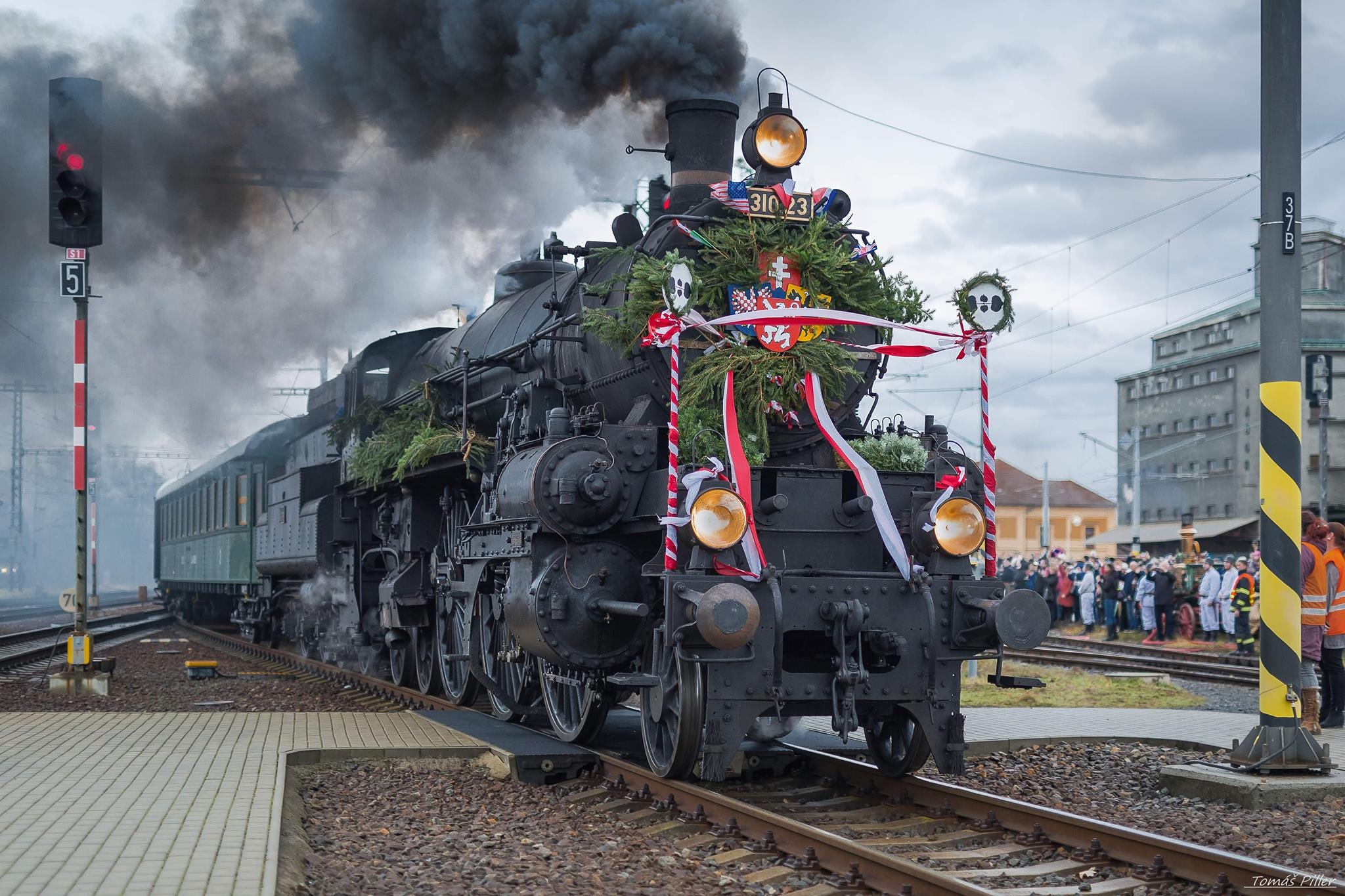 T. G. Masaryk opustil Čechy v prosinci 1914 v Horním Dvořišti, kam se po čtyřech letech 20. prosince 1918 vrátil ve funkci prezidenta ČSR. Když přejížděl státní hranice, vojáci vystřelili z děl tři rány. Jeho příjezdu do slavnostně vyzdobeného nádraží vlajkami, vítacími nápisy a chvojím v Horním Dvořišti přihlíželo za nevlídného počasí tisíce nadšených lidí. Vlak, který byl složen ze dvou vozů služebních, tří salonních, čtyř první třídy, jednoho 2. třídy, pěti osobních a tří nákladních, ve stanici zastavil. Z vagónu, který byl obsazen italskými legionáři, vlál černý husitský prapor s červeným kalichem. T. G. Masaryk stáhl okno a hudba začala hrát hymnu „Kde domov můj“. V tu chvíli se mu zalily oči slzami. Z vlaku po Masarykovi postupně vystoupili všichni členové jeho doprovodu: francouzský vyslanec v Praze Clement Simon, italský brigádní generál Luigi Giussepe Piccione, britský plukovník Sir Thomas Mongomery Cunningham, francouzský legionář a plukovník Otakar Husák, italský legionář major Jan Šeba, ruský legionář major Špaček a další významné osobnosti. S panem prezidentem a Olgou se přišel uvítat syn Jan, členové vlády a Národního shromáždění, diplomaté, legionáři i prostí lidé.