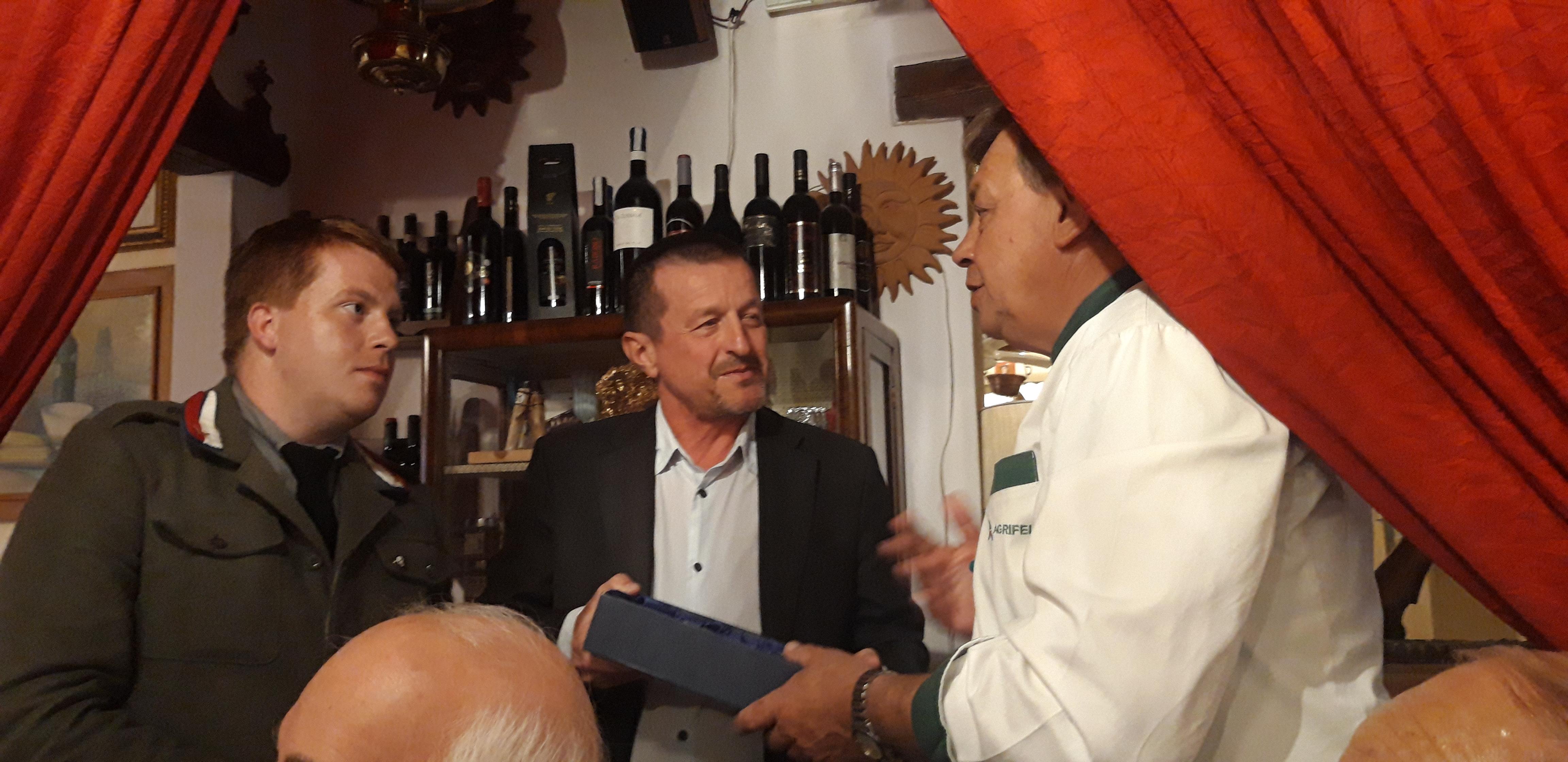 Odpoledne nás čekal druhý přesun směrem na východ k Piavě, přesně do Fossalta di Piave, kde proběhl pietní akt u desky br. poručíka in memoriam Jana Čapka. Tento akt byl ze strany obce velmi dobře připraven a těšil se hojné účasti zástupců města. Osobně nás přivítala paní starostka Silvia Susanna a společně s ní jsme také odpovídali zvídavému štábu regionální televize. U pietního aktu se také sešli snad všichni bersaglierští veteráni (bersaglieri – italská lehká pěchota) ze širokého okolí. Potom co místní bersaglierský kadet zatroubil večerku si všechny delegace vyměnily dary a byli Flaviem Doretto, vlastníkem a zároveň šéfkuchařem Antica Trattoria „Alla Fossetta“, tedy restaurace, na níž je umístěna pamětní deska, na vynikající večeři. Mezitím než se mělo jídlo připravit, byli jsme naším italským kolegou reenactorem Giudem Tisato vzati na místo posledního boje Jana Čapka, abychom si přímo na místě popsali průběh celých operací v okolí, především pak útočných oddílů – arditi. Když jsme se vrátili do restaurace, tak jsme se nestačili divit, jak úžasná je italská pohostinnost, neboť příchody dalších a dalších chodů nebraly konce. Ke konci se nám všem jen protáčely panenky nad úžasnými pokrmy. Nejvíce nás však zničil (v dobrém slova smyslu) majitel Flavio, když zvolal, že zde se zbytky nenechávají! V nejlepším se však má přestat a tak jsme museli zkrátit naši debatu s historiky Brunem Marcuzzo (autor publikace I leoni delle due rive – I cecoslovacchi nel basso Piave, v češtině Lvi se dvěma ocasy – Čechoslováci na dolním Piave) a Michelem Valerio. S novými přátelstvími na srdci a úžasné večeři v žaludku jsme se rozloučili, protože nás čekal poslední a také nejdelší přesun dne, směrem do Terstu.