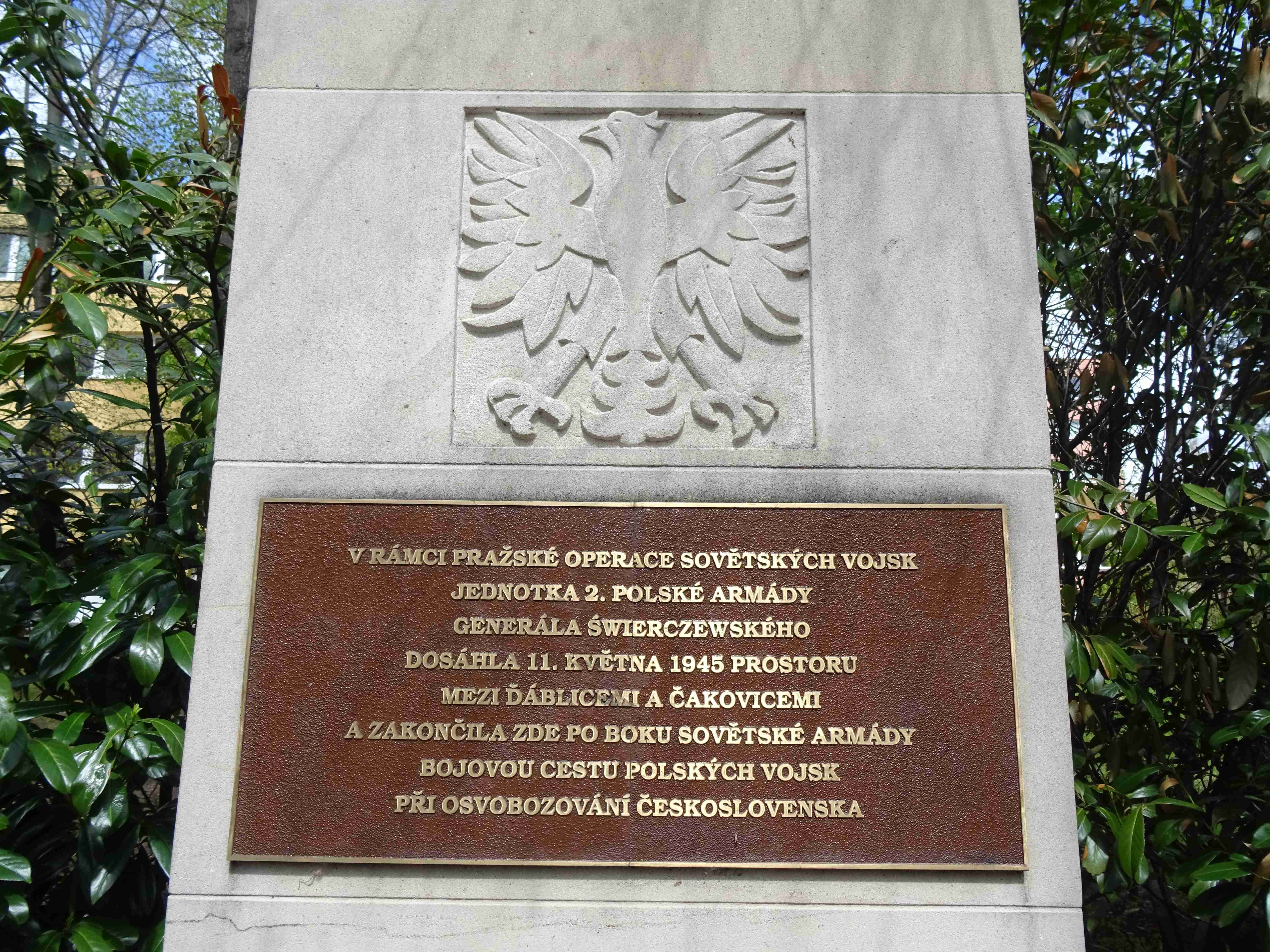 Šestá zastávka se nacházela jen o kousek dále po Žernosecké ulici, před budovou základní školy. Pomník ze světlého kamene s vytesanou polskou orlicí připomíná podíl polské Druhé armády na osvobození severních Čech a účast polských vojáků na Pražské operaci Rudé armády. Jednotky polské armády pod velením generála Karola Świrczewského dosáhly 11. května 1945 prostoru mezi Ďáblicemi a Čakovicemi, čímž zakončily bojovou cestu polských vojsk v rámci osvobozování Československa.