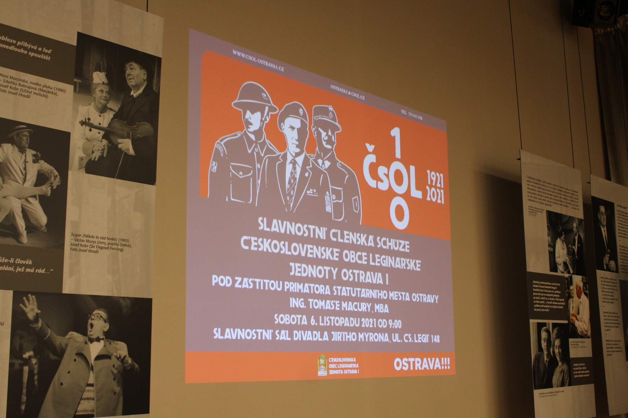 Dne 6. listopadu se uskutečnila pod záštitou primátora Statutárního města Ostravy Ing. Tomáše Macury, MBA slavnostní členská schůze Jednoty Československé obce legionářské Ostrava 1. Stalo se tak symbolicky v prostorách Divadla Jiřího Myrona – někdejšího moravsko-ostravského národního domu – kde se 29. května 1921 sešli legionáři ze Slezska a severní Moravy, aby týden po ustavujícím pražském sjezdu položili základy Moravskoslezské župy ČsOL a mnoha jejích místních jednot.