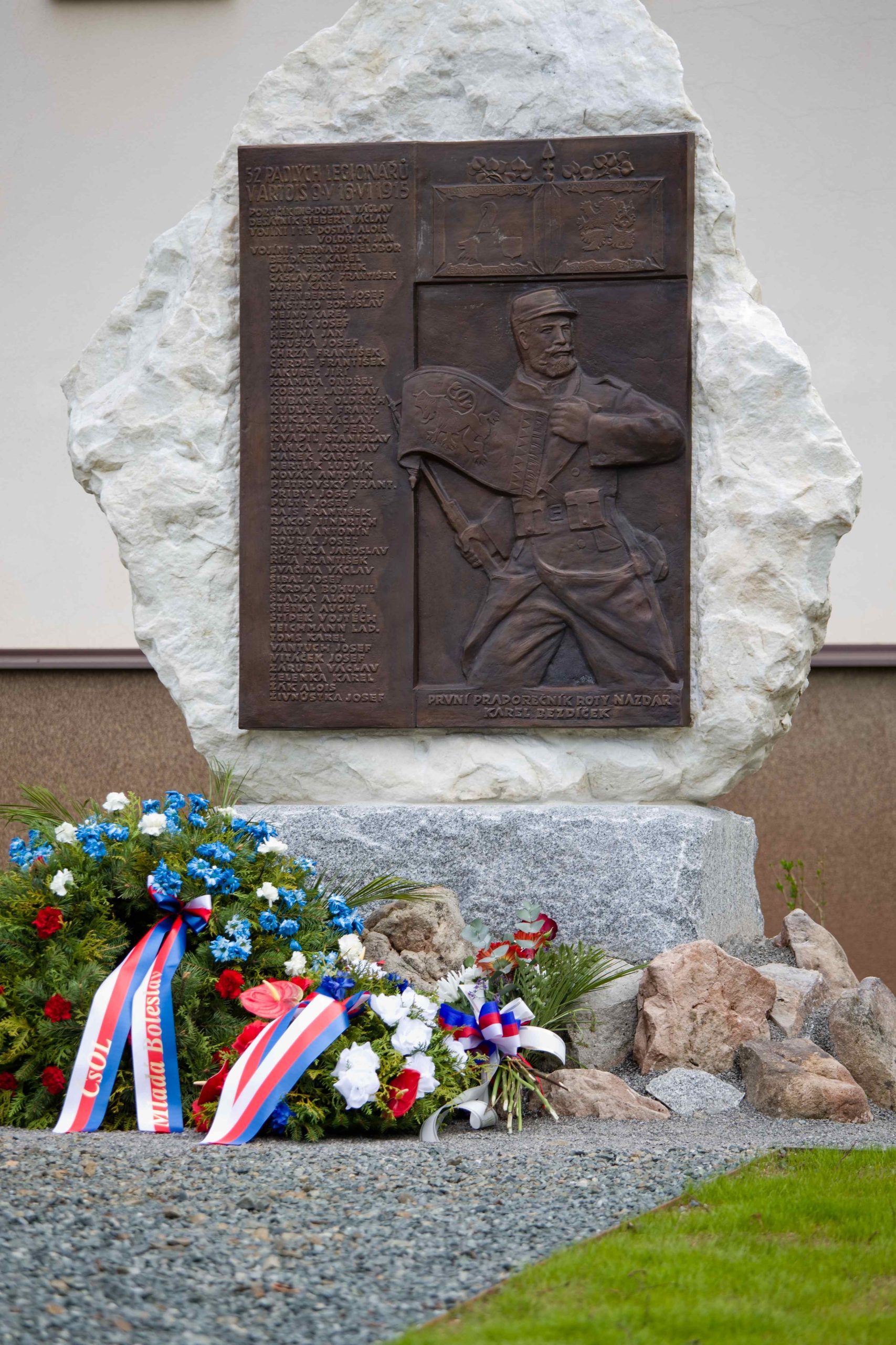 Bronzová pamětní deska s reliéfem praporečníka Karla Bezdíčka a jmény padlých legionářů, vsazená do krkonošského mramoru, byla odhalena v sobotu 6. května ve 14 hodin za účasti vrcholných představitelů Policie ČR v čele s policejním prezidentem genmjr. Mgr. Martinem Vondráškem. Resort Ministerstva obrany České republiky na akci prezentoval ředitel Krajského vojenského velitelství Hradec Králové pan plk. gšt. Ing. Tomáš Rak, MBA. Vzácnou návštěvou byl francouzský přidělenec obrany plk. Jean-Charles Peltier a samotné město Trutnov zastupoval jeho místostarosta Mgr. Tomáš Eichler. Přítomní byli i členové horní a dolní komory Parlamentu České republiky – pan senátor Ing. Jan Sobotka a poslanci Mgr. Ivan Adamec a Jan Hofmann.